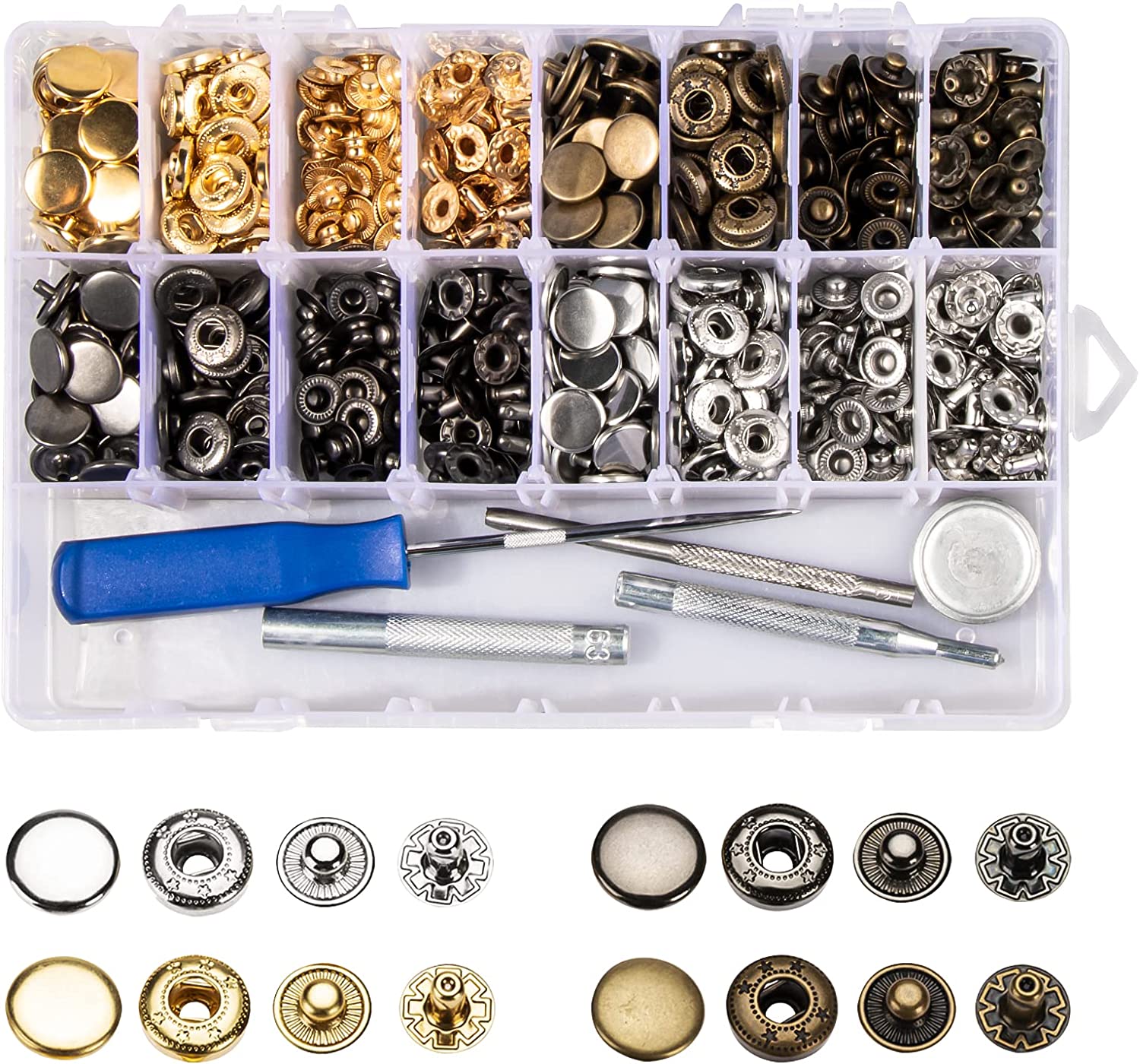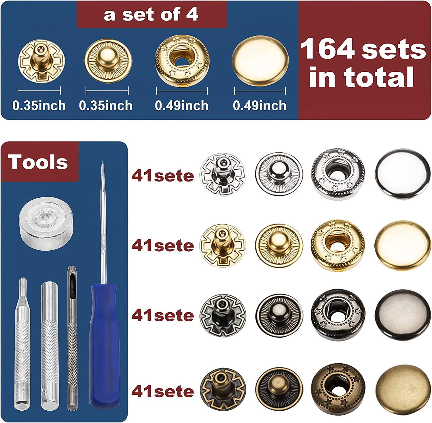 4 Colors: The metal snaps for leather includes four colors: gold, silver, black and bronze. Each color has 41 sets, a total of 164 sets. A variety of colors can be matched with different colors of clothes and scenes. There is always one that suits you.