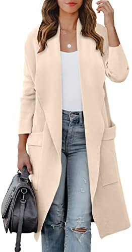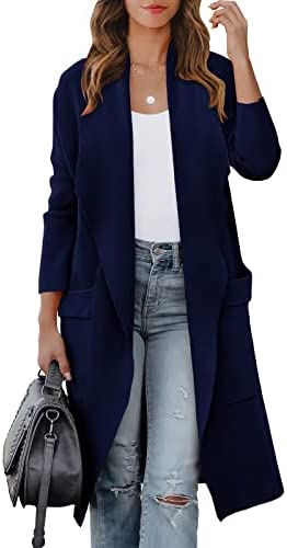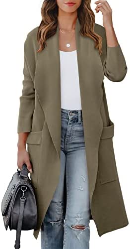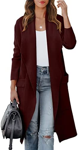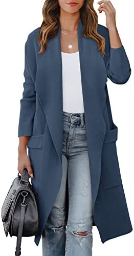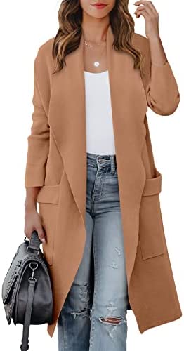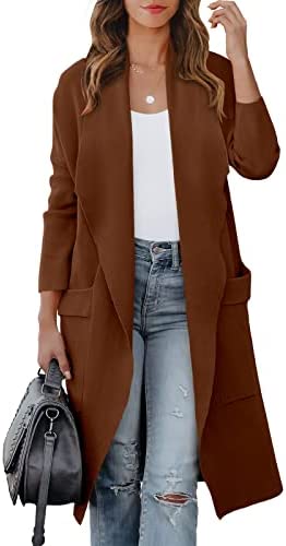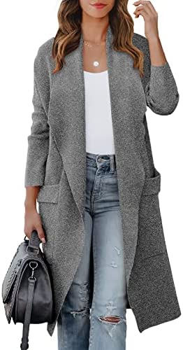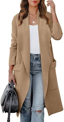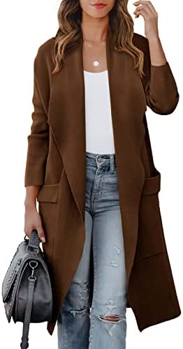 ANRABESS Women's Casual Long Sleeve Draped Open Front Knit Pockets Long Cardigan Jackets Sweater