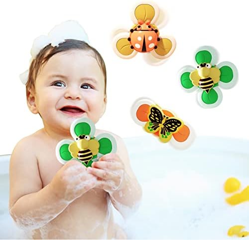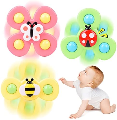 Suction Cup Spinner Toy for Baby, 3PCS Spinner Sensory Toys for Toddlers 1-3 Cartoon Baby Bath Toys 6 to 12 Months Kids Birthday Gift for Baby High Chair/Bathing/Dining Table/Travelling (Colorful)