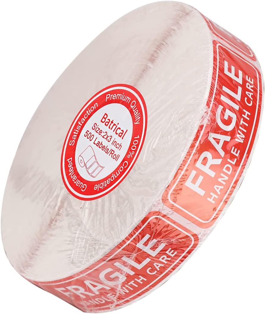 Batrical Fragile Stickers for Shipping and Moving 1 Rolls 1"x3" 1000/Roll