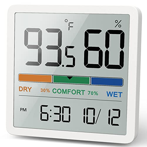 NOKLEAD Indoor Thermometer Hygrometer: Room Temperature Gauge Humidity Monitor for Home, Magnetic, Kickstand, 3.3in Screen, Air Comfort Indicator, Time, Date (Spare Battery Included) - White