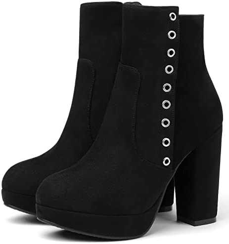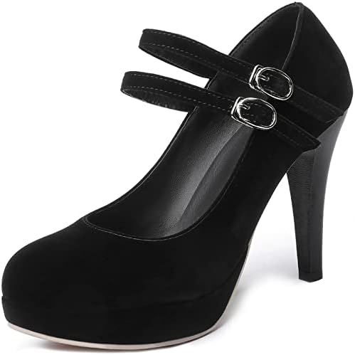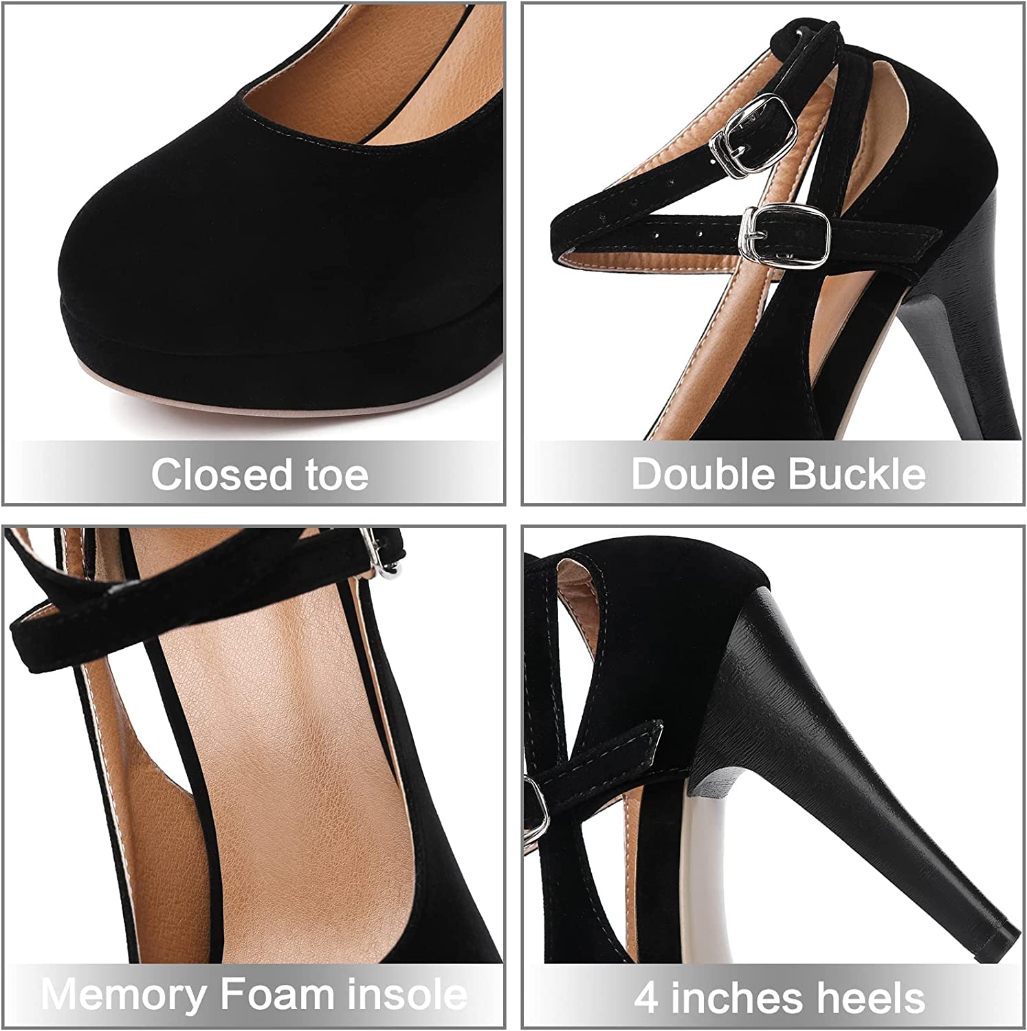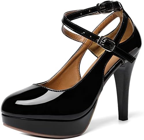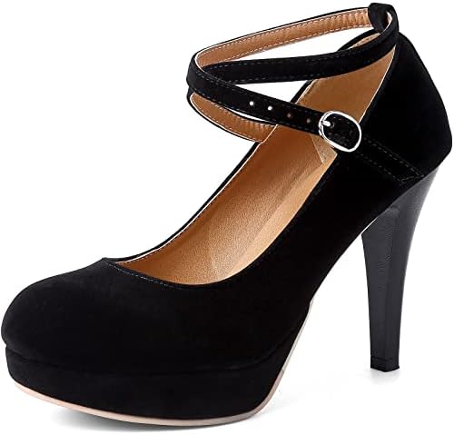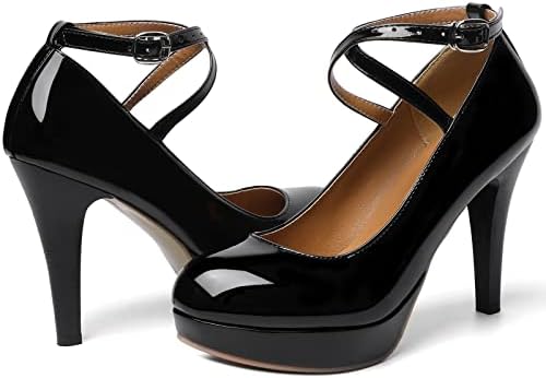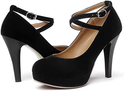 RIBONGZ Black Strappy Heels for Women Closed Toe Platform High Heels Pumps Sexy Summer Comfortable 4 inch Stiletto Heels