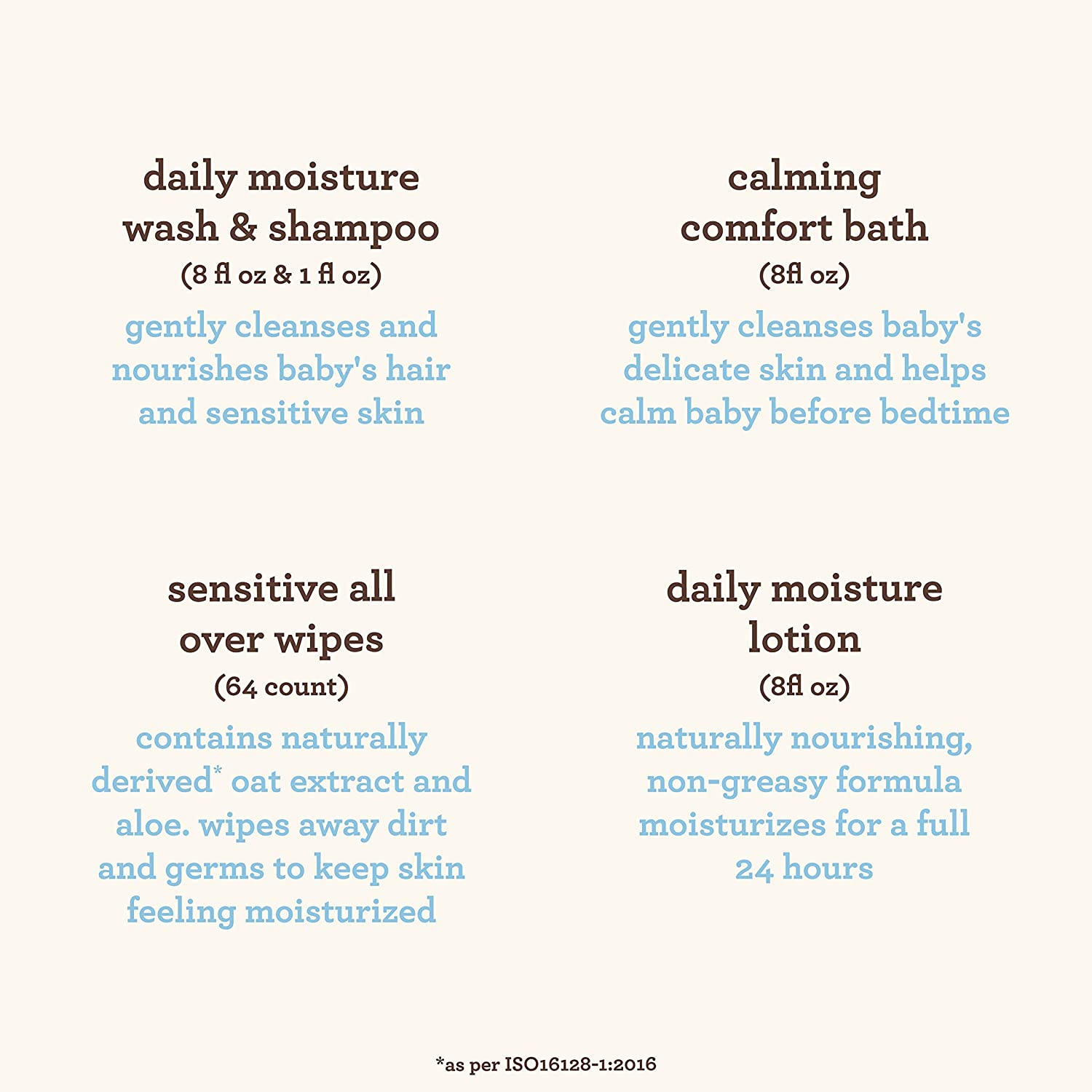 • Includes an 8-ounce tube of hypoallergenic, fragrance-free Aveeno Baby Daily Moisture lotion, formulated with oat flour, which protects and moisturizes baby's sensitive skin for 24 hours