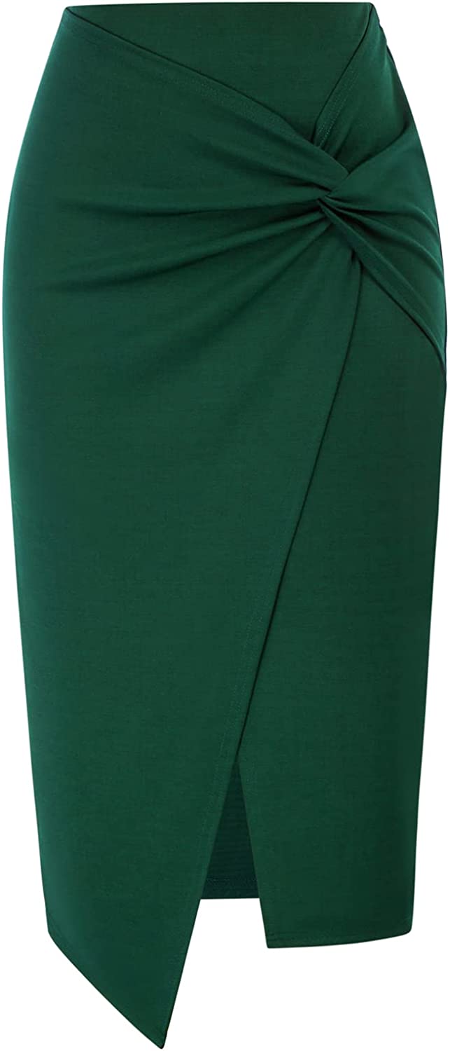 • Features: The high waisted pencil skirt comes with high waisted design, solid color, knee length, knotted front, moderately stretchy and hidden zip at back. The fashion and versatile design is suitable for business and going out, wear this women's pencil skirt to complete a fresh look in daily life
