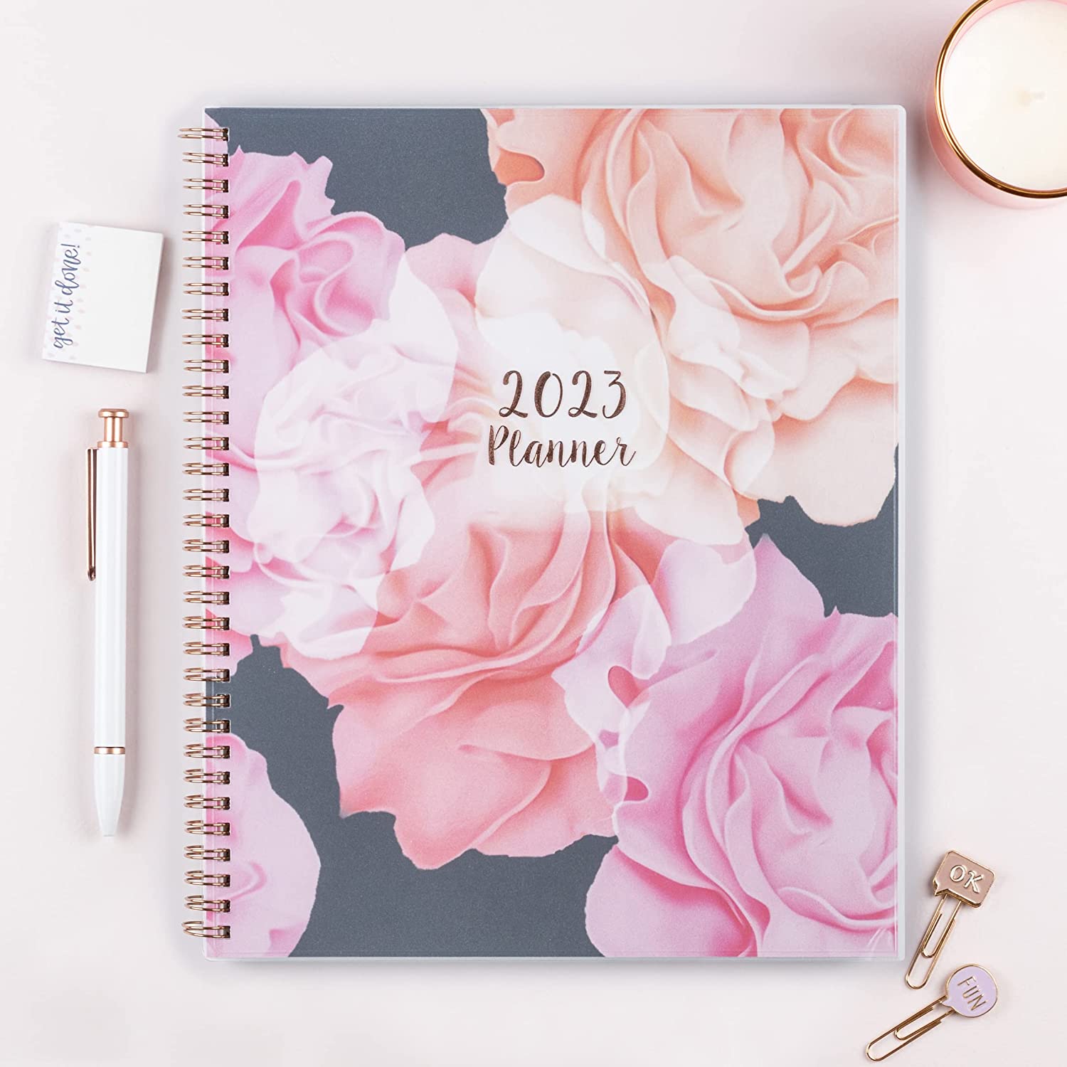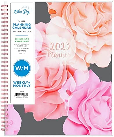 Plan your year in style with the beautiful florals and rich colors of the 2023 calendar year Joselyn collection. This stylish weekly and monthly planner will keep you organized everywhere you go. Simple page designs add a touch of sophistication and offer plenty of room for all of your important information. Designed with practicality and ease of use in mind, this floral agenda's monthly calendar tabs allow for easy access to each month’s plans while weekly views offer ample writing space for detailing each day. High quality white paper provides clean writing space for jotting down your appointments, to-dos and reminders. Use this dated planner to keep track of your appointments, and to write down notes and ideas in one place. Durable coated tabbed dividers are long lasting and make accessing information a breeze. Premium quality covers and twin-wire binding provide reliable durability for daily use. Stay on track throughout the year with this 8.5 x 11 planner dated January 2023 - December 2023. Mix and match with other Joselyn Collection planning products from Blue Sky to organize your daily life.