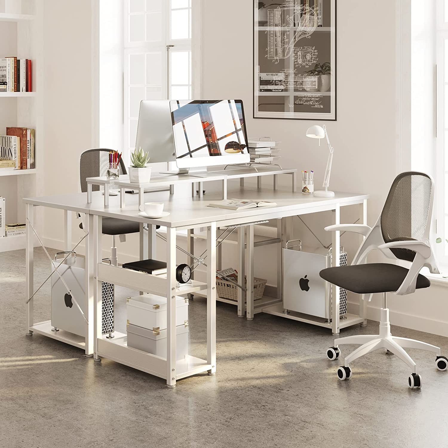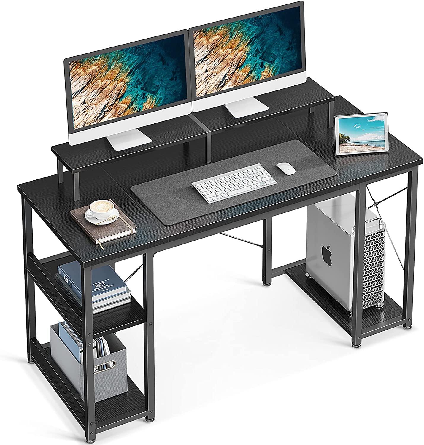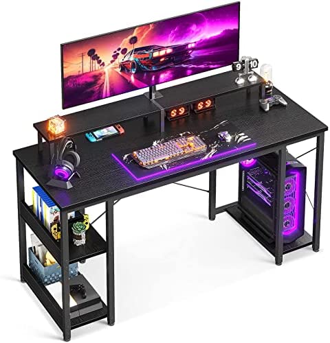 • 【Computer Desk with Monitor Stand】Measuring 4.5” in height, the monitor shelf raises your screen for better visibility and reduces neck and backache, large space for monitor stand allows two computer monitors.