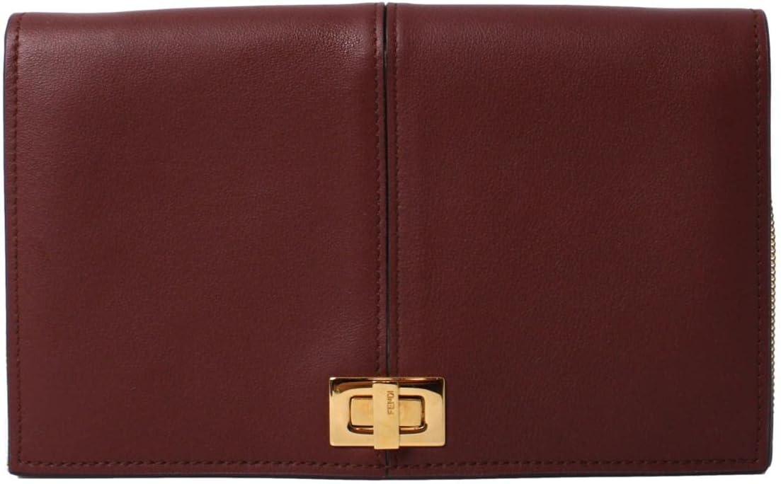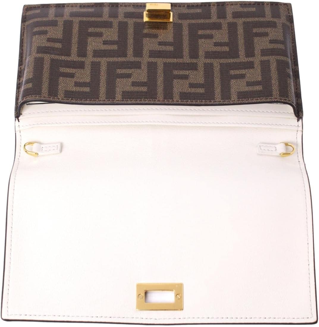 FENDI Peekaboo Brown Leather Zucca Chain Wallet Clutch Bag 8M0414