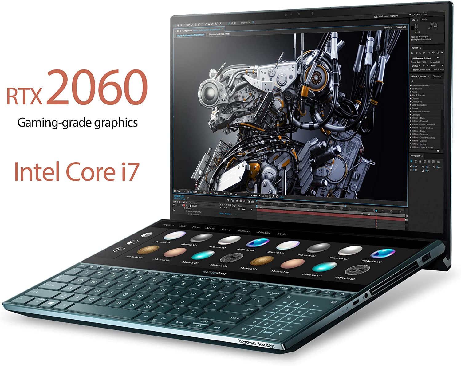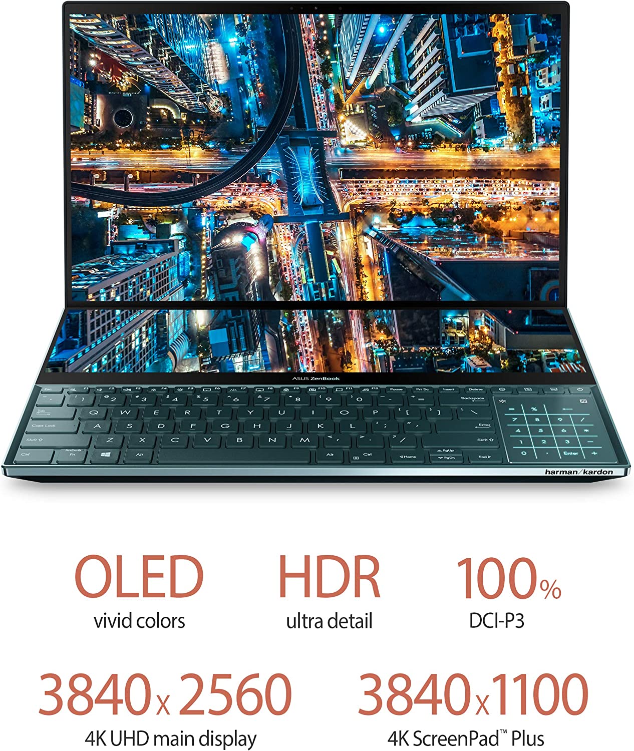 ASUS ZenBook Pro Duo UX581 Laptop, 15.6” 4K UHD NanoEdge Touch Display, Intel Core i7-10750H, 16GB RAM, 1TB PCIe SSD, GeForce RTX 2060, ScreenPad? Plus, Windows 10 Pro, Celestial Blue, UX581LV-XS74T
