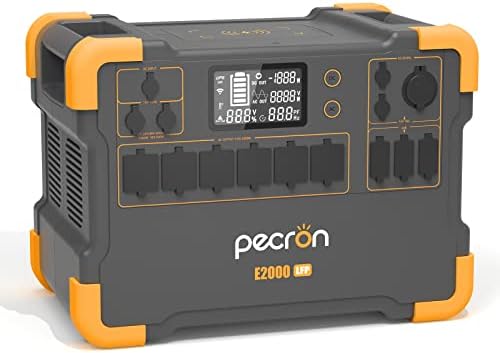 pecron Portable Power Station E2000LFP,1920Wh LiFePO4 Battery Backup Expandable to 8064Wh 6X2000W AC Outlets 1200W Max Solar Input Backup Power for Outdoors Camping Fishing Emergency
