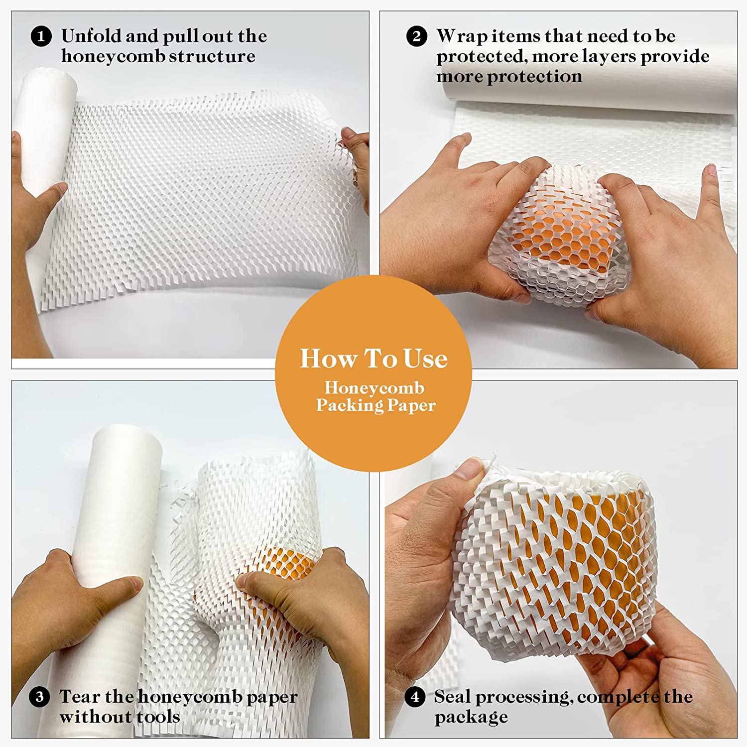 • Easy to use: The honeycomb wrapping paper has a perforated design, which can be torn off without scissors or other tools, which improves the packaging speed.