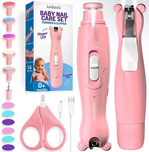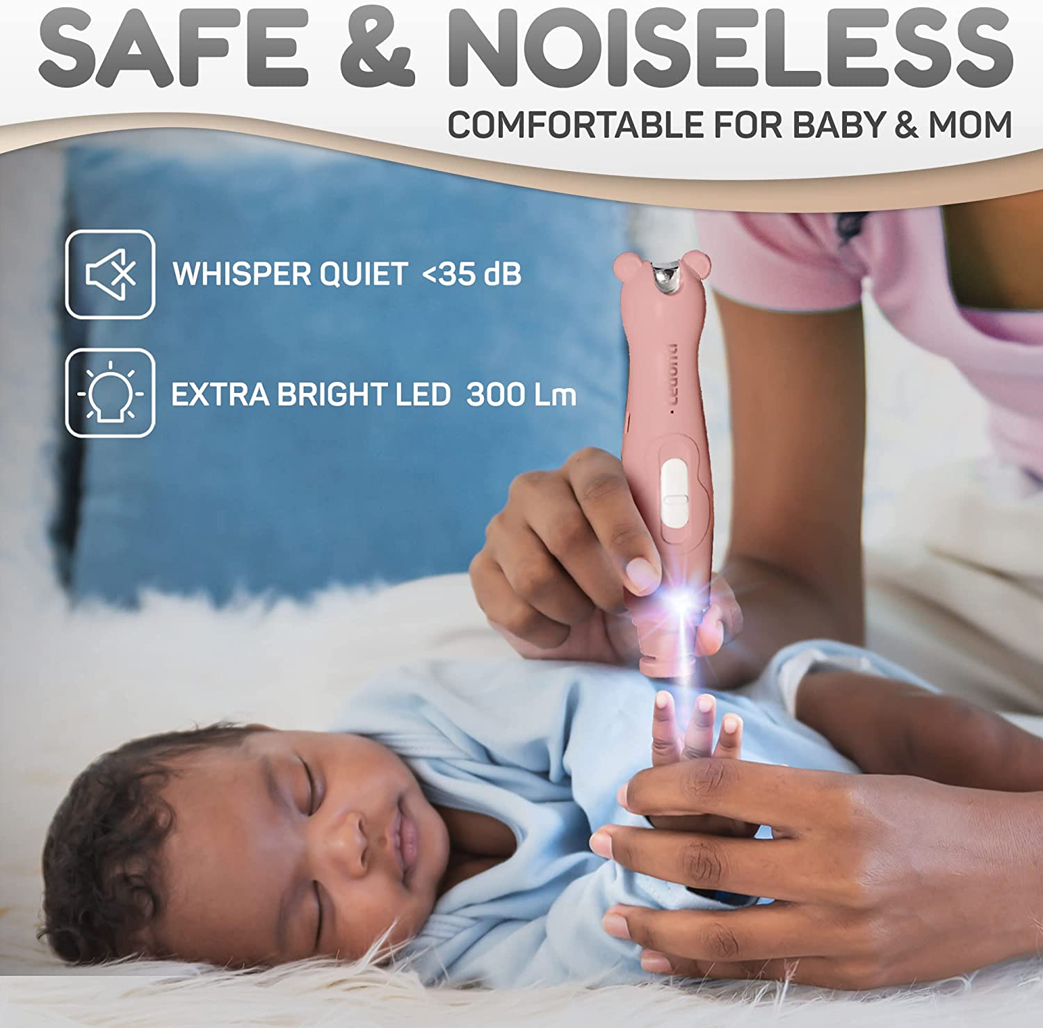 Rechargeable Baby Nail Clippers - Baby Nail Trimmer Electric w/Led Light for Newborn, Infant, Toddler, Kids - Baby Manicure Fingernail Care Set w/Scissors - Baby Essentials Must Haves Grinder Cutter