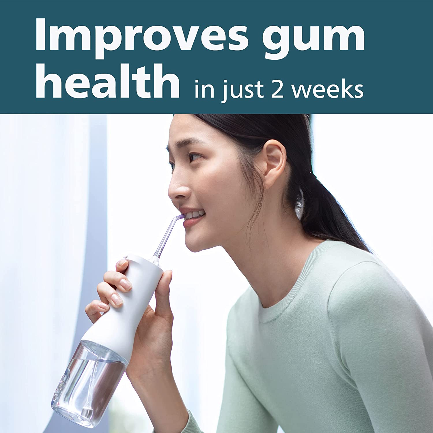 Discover effortless and convenient flossing that's 150% more effective than string floss in improving gum health! The Philips Sonicare Power Flosser 3000 Cordless has a sleek design that's easy to hold, 14-day battery life, large reservoir (no need to stop mid-clean to refill!), and is waterproof -- all for ultimate convenience. The unique Quad Stream technology creates an X-shaped stream of water that reaches deep between teeth, covering more surface area for a faster, deeper clean. Philips Sonicare Power Flosser 3000 Cordless enables you to improve your gum health by 50% in just 1 minute per day!