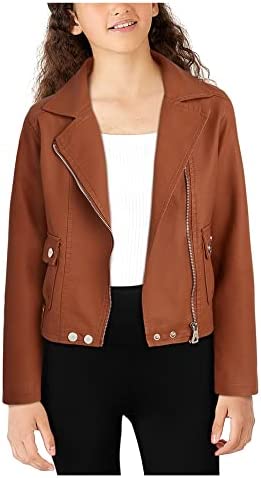 • MOTO STYLE: Our timeless and classic moto biker jackets feature a comfortable zip design, deep hip pockets to cover chilly hands and valuables; Earn some extra style points when hanging out with your friends and family with this girls' lightweight coat; Perfect for school, playdates, and any autumn outdoor activities, our selection of fashionable vegan leather jackets will help you nail your daughters dream look