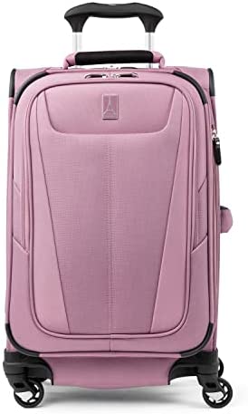 This carry-on soft-sided spinner is so light, it flies; one of our lightest wheeled carry-on suitcases, the Maxlite 5 21" expandable spinner is designed for ultimate comfort and mobility, featuring a 2-position adjustable PowerScope lite handle with patented Contour grip and 4-wheel 360 degree rotating spinners that glide effortlessly. Enjoy packing convenience with two quick-access, exterior front pockets, full-length interior lid pocket, side accessory pocket and adjustable hold-down straps, while the high-tensile-strength expandable zipper gives you maximum packing flexibility. Backed by a new and expanded trusted traveler promise-for worry-free warranty coverage from Travelpro.