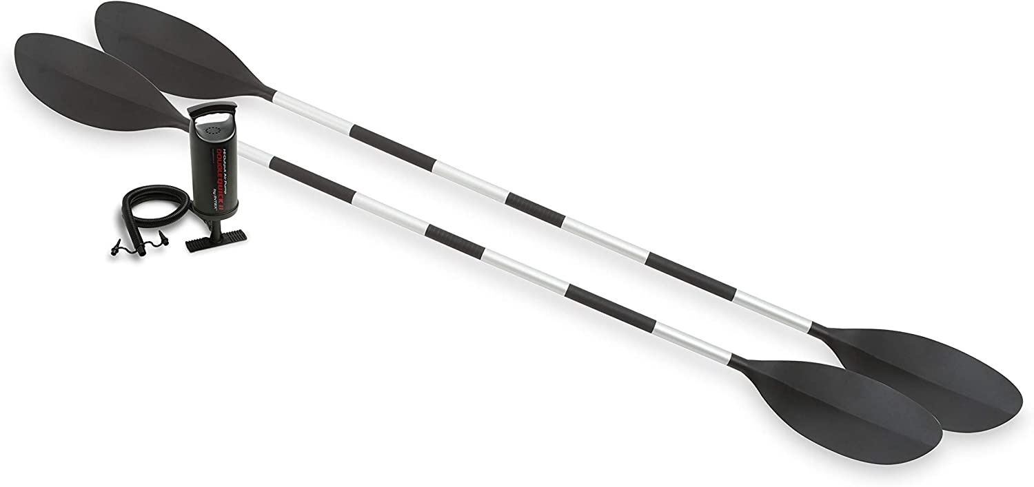 Explorer K2 Kayak, 2-Person Inflatable Kayak Set with Aluminum Oars, Manual and Electric Pumps…