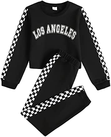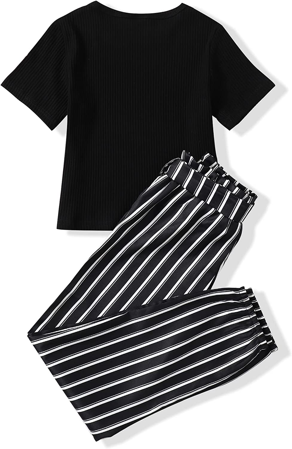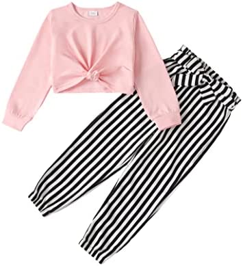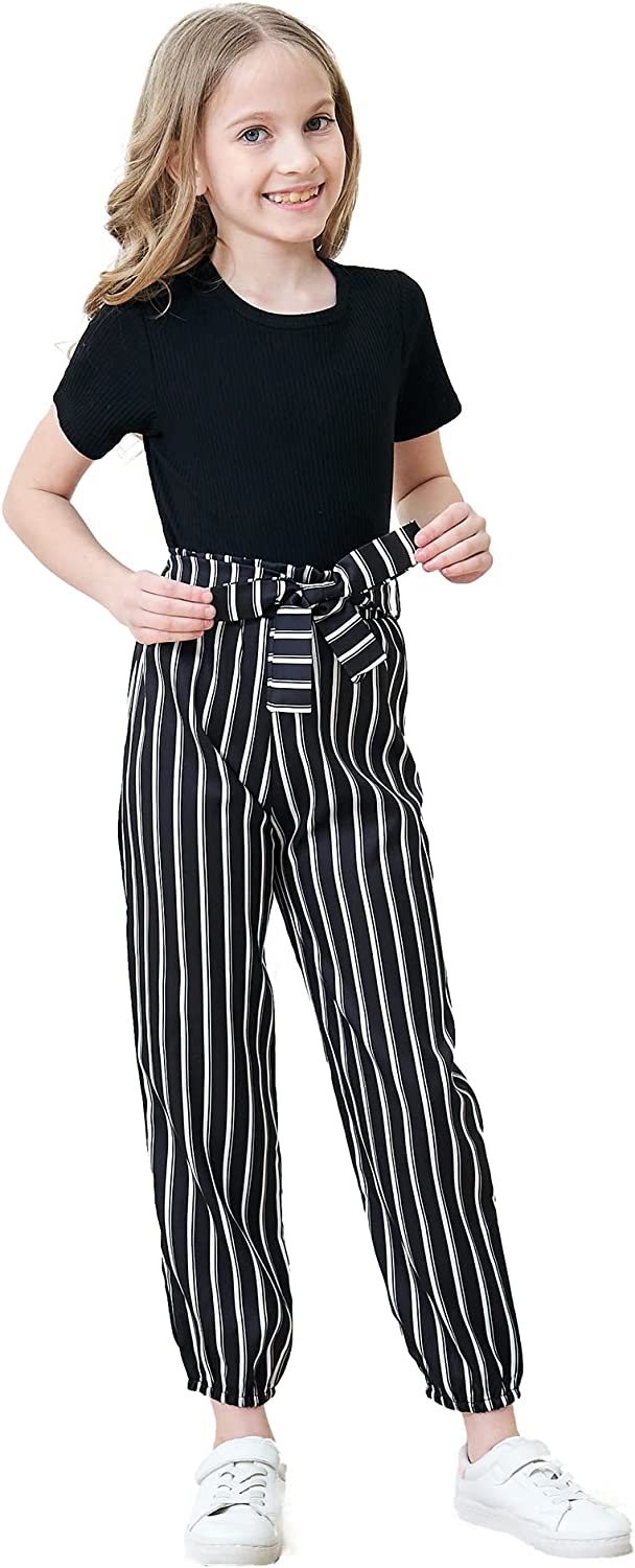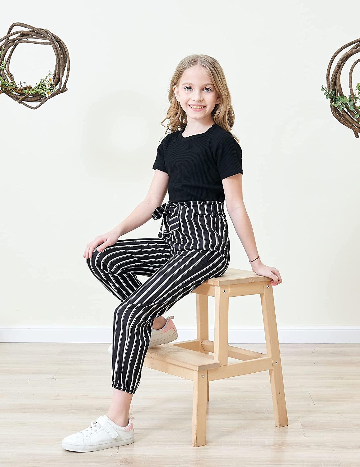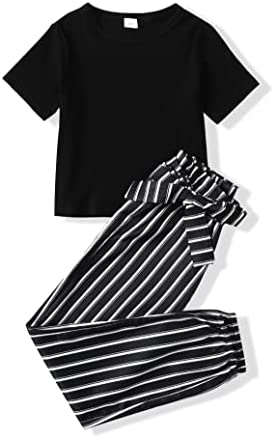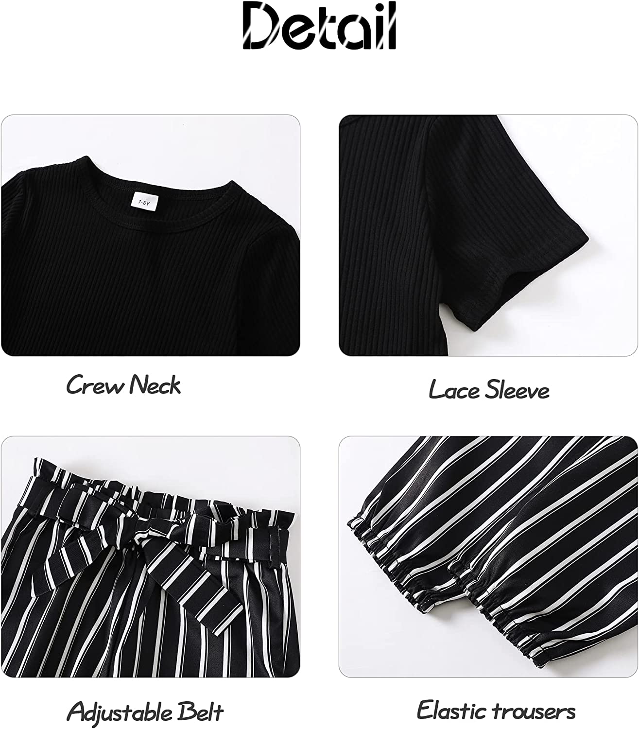 • CHARACTER: 2-piece girl's black knit short sleeve top and black and white stripe long pants sets, cute little girl fall outfits, a good comfortable kid girl's clothing set!