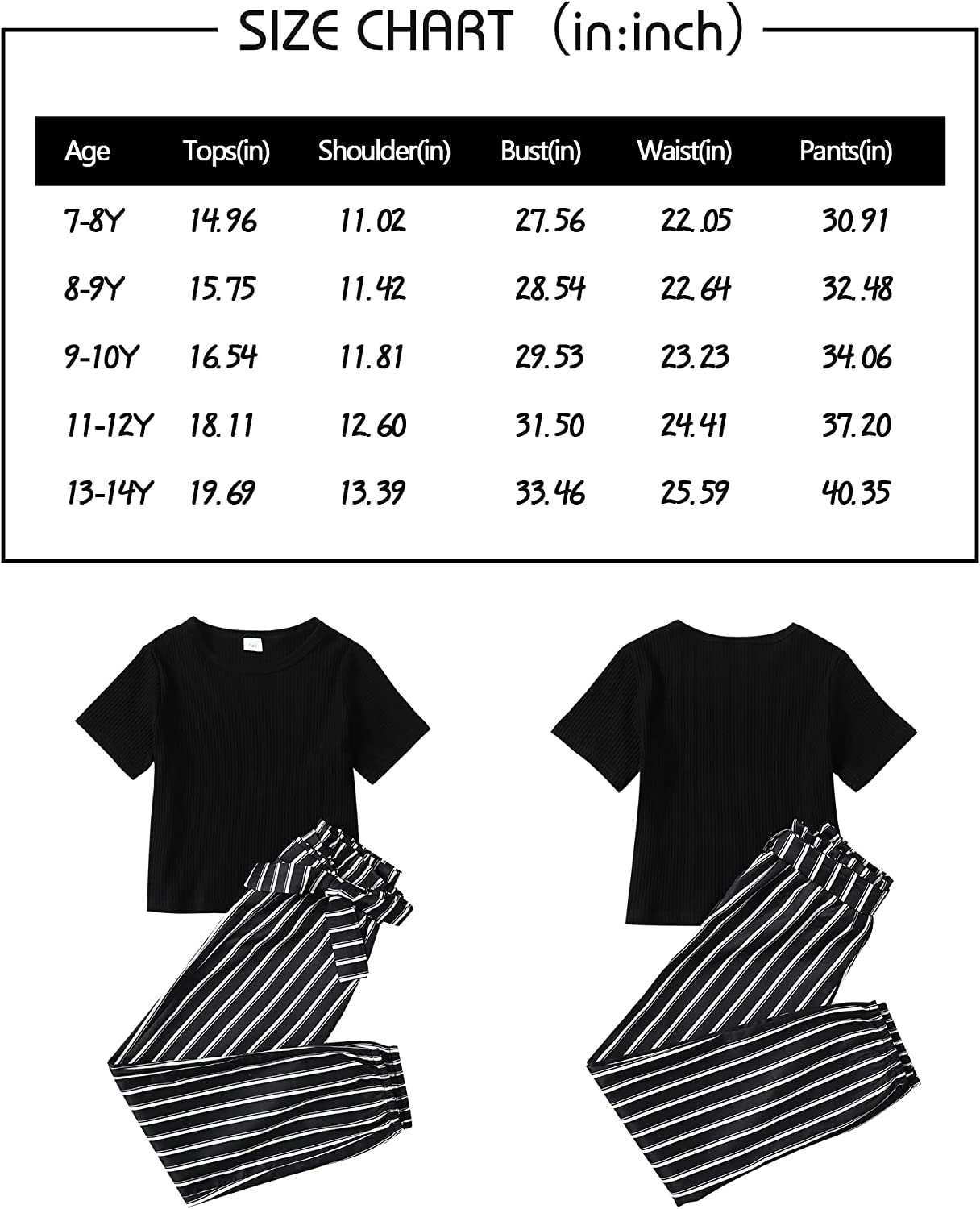 • SIZE: 5-6T little girl clothes, size 7-8 kids outfits, 9-10 years old girl clothing, size 11-12 girl outfits set and 13-14 years old girl clothes.