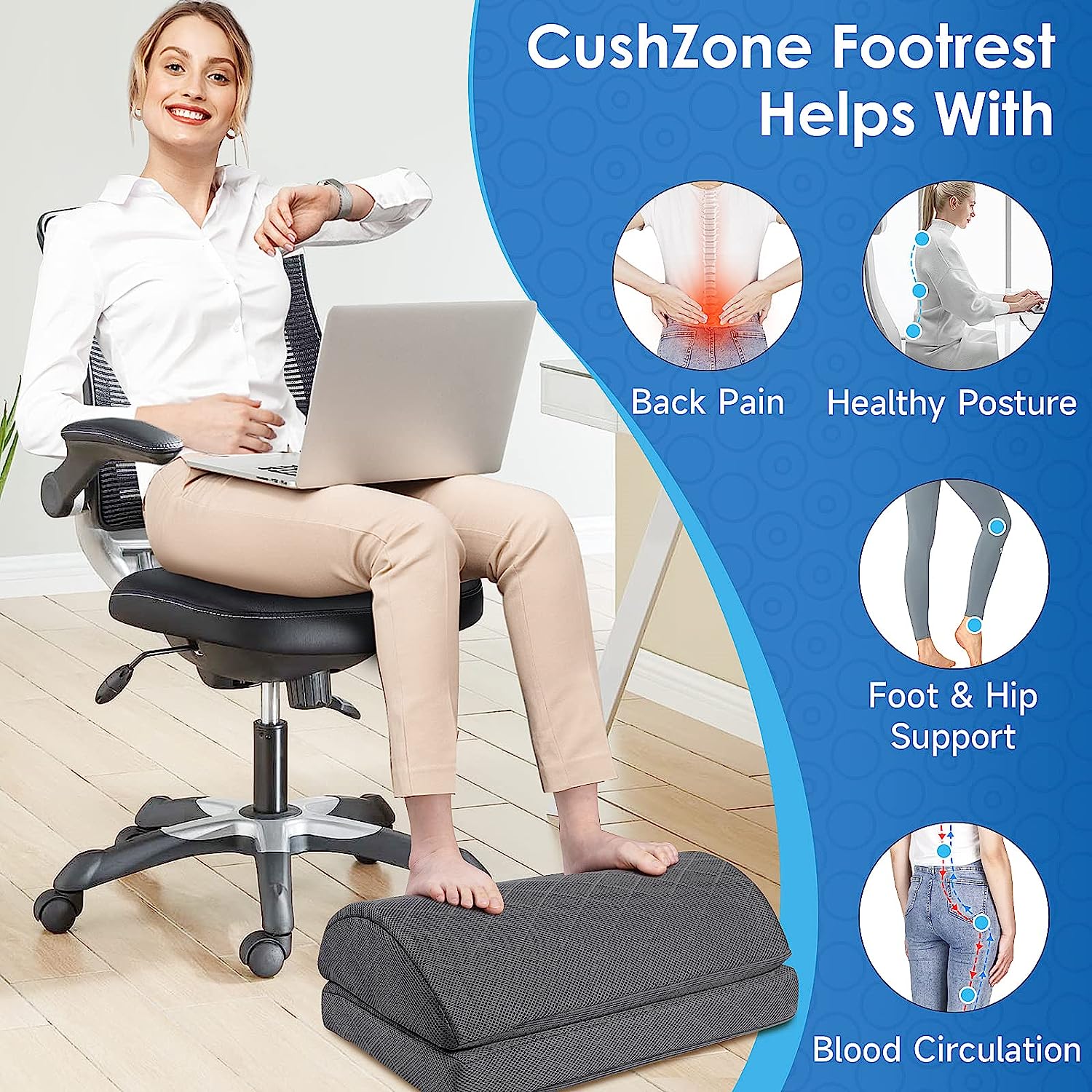 CushZone Foot Rest for Under Desk at Work Adjustable Foam for Office, Work, Gaming, Computer, Gift, Home Office Accessories Back & Hip Pain Relief (Grey)