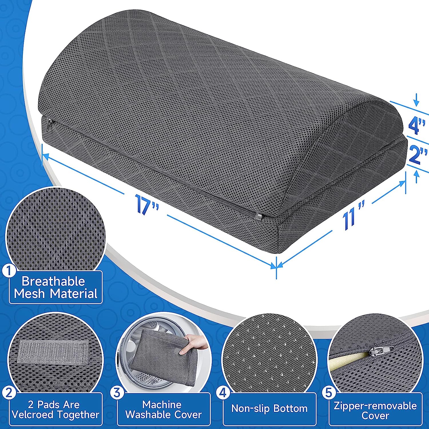 • Adjustable height of Foot Rest: The two-piece removable footrest can be used together for a total height of 6 inches or detached for individual use, and may be used to stretch your feet to any desired height. Each individual foot pillow has a non-slip ball underneath.