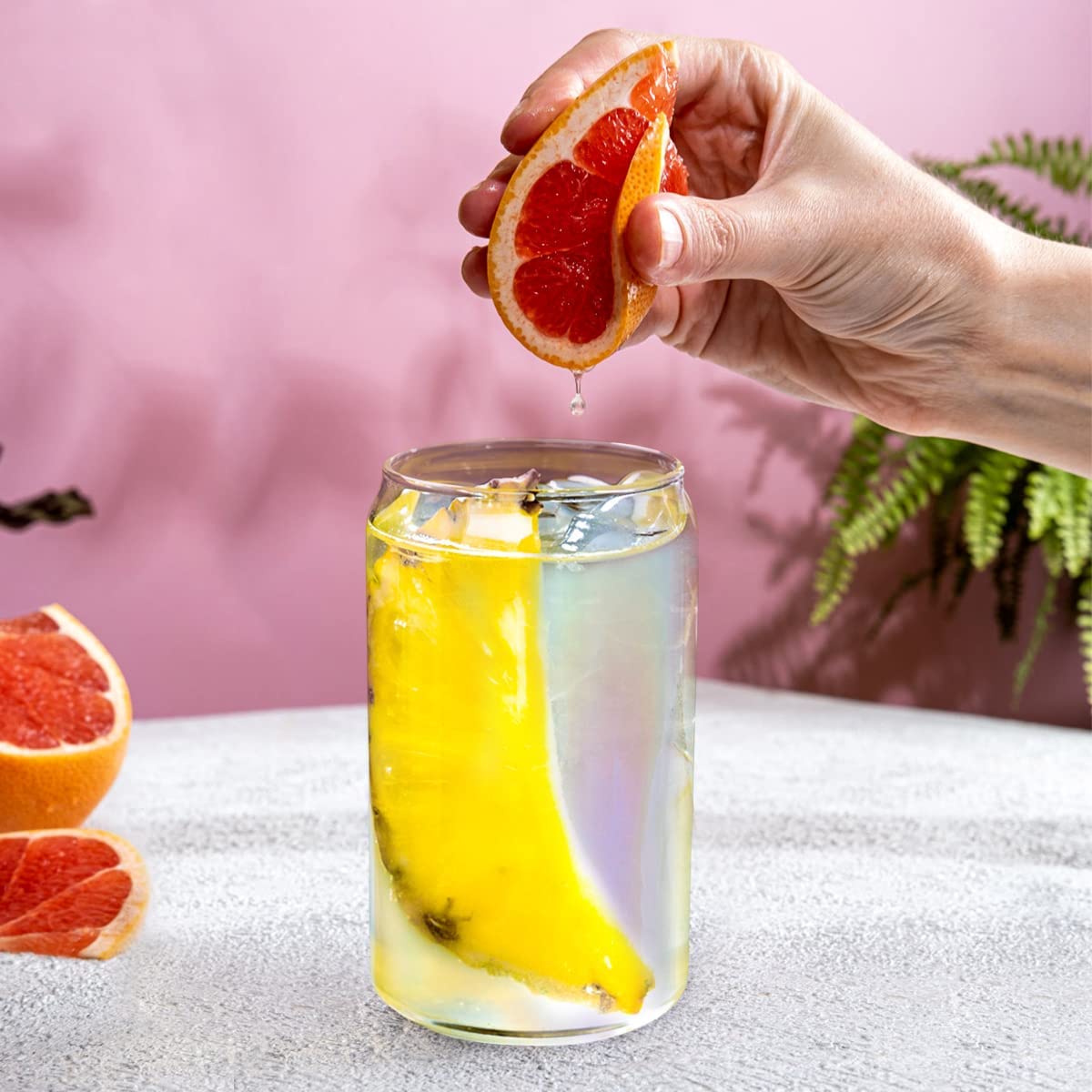 • Multipurpose Glass Tumblers:The glass cups set great for any occasion, for juicing and various homemade beverages. Perfect for beer, corktail, water, soda, milk, iced coffee, tea, mixed drinks, or even a smoothie, any drink you want.