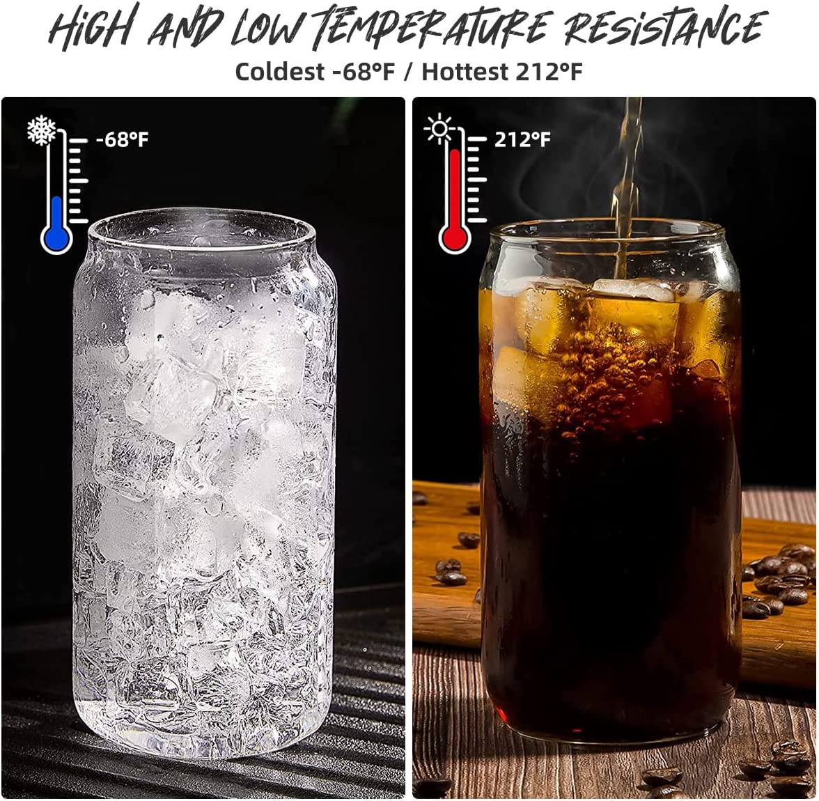 • Premium Healthy Quality Glass Cups:The glass tumblers with lid and straw are made of high-quality durable clear glass, Lead-free and BPA-free.The thick glasses can withstand the sudden changes in the temperature difference between -68°F to 212°F.