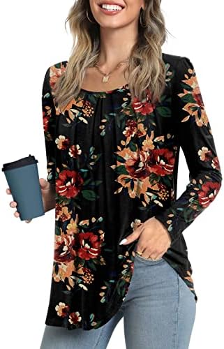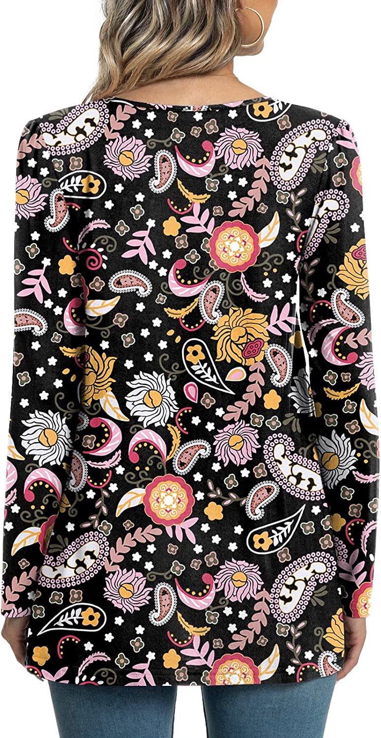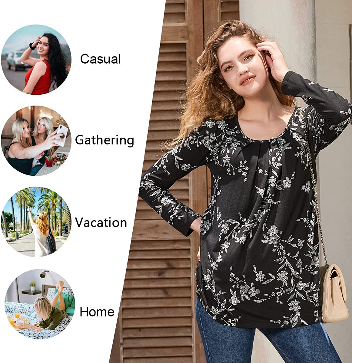 • ❤【Features】 Crew neck, long sleeve, pleated on the front, easy to cover your belly and back area. Stretch, soft, loose, comfy, casual style. A variety of different solid and floral print are available for you to choose from.