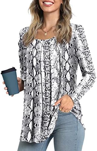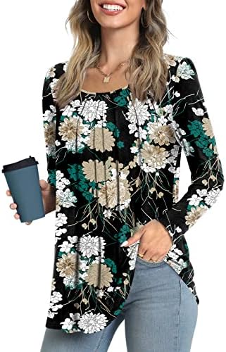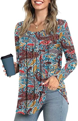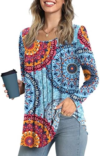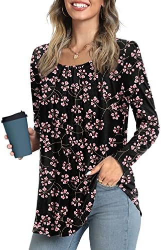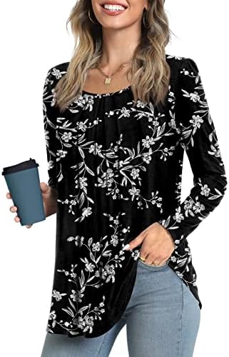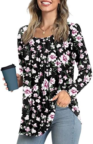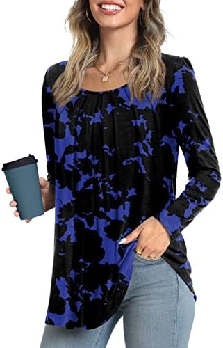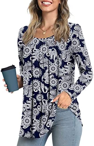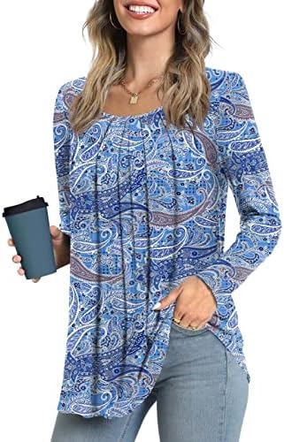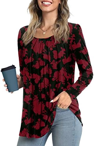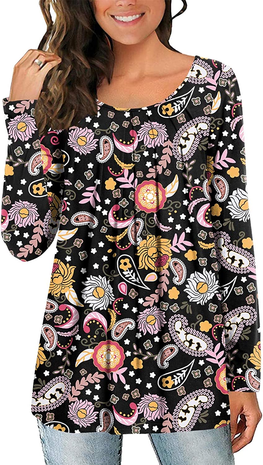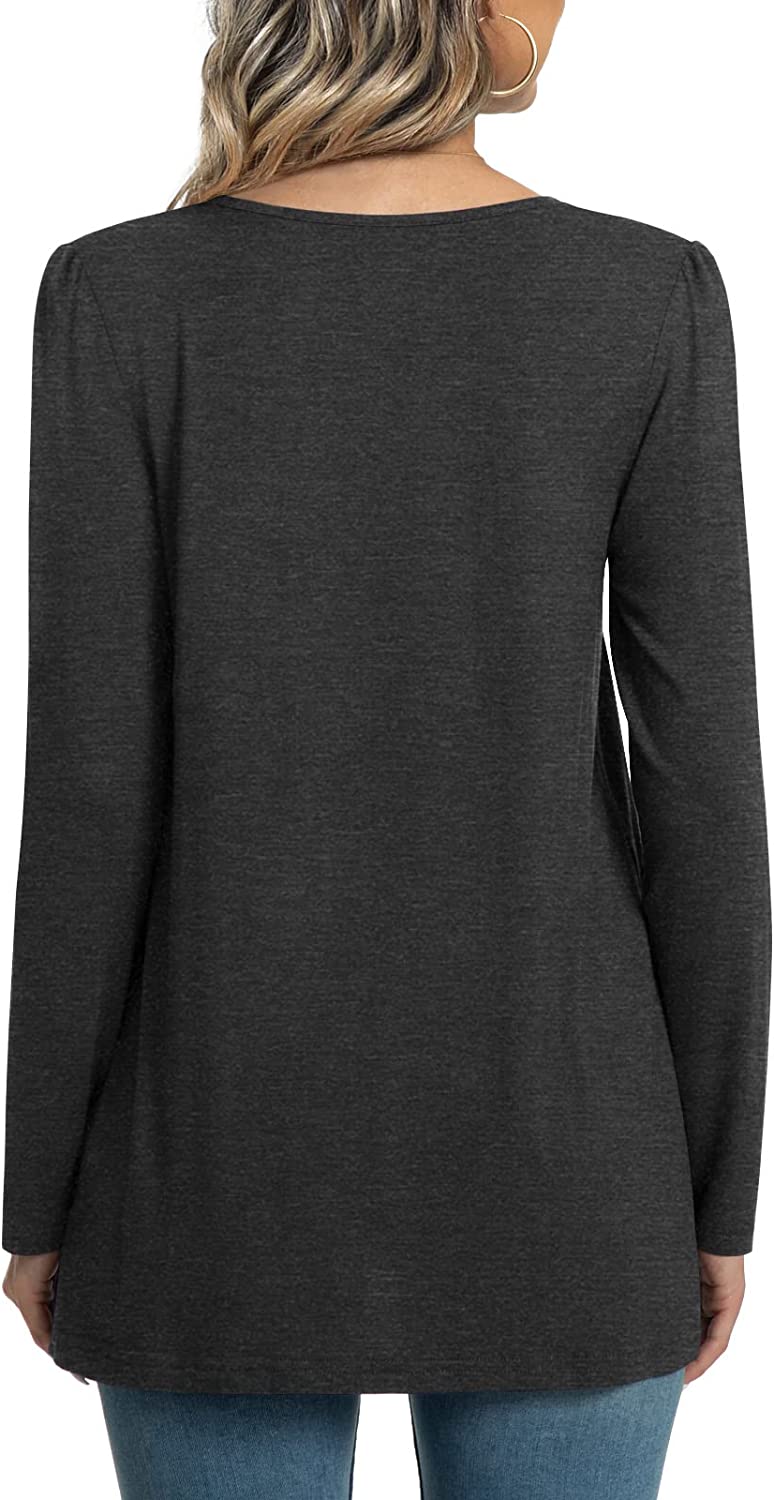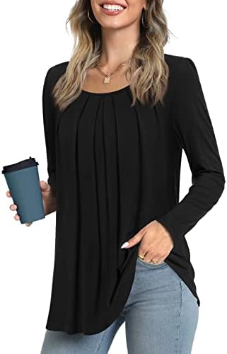 Anymeet 2023 Women's Spring Fall Tunic Top Long Sleeve Casual Tee Pleated Shirts Comfy Loose Blouses