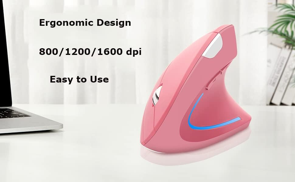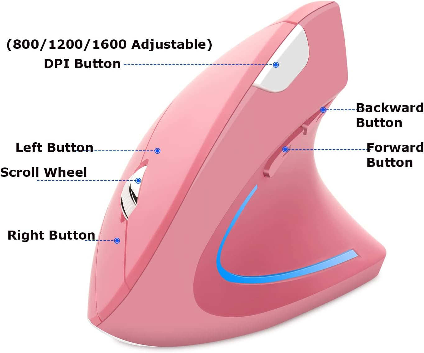 Wireless Mouse Ergonomic Vertical Mouse Ergo High Presion Optical Lightweight Cordless LED Light Cute Wireless Mouse for Laptop Computer Mac Office Girl Boy Adults Gift , 800/1200/1600 DPI, 6 Buttons