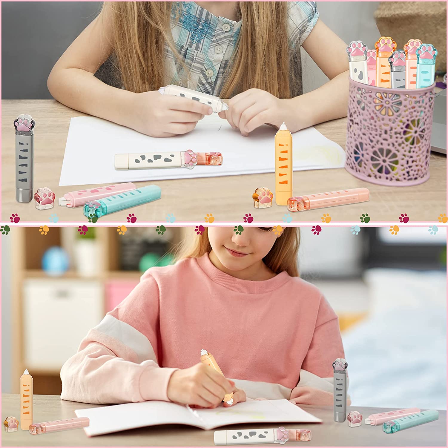6 Pack Cartoon Correction Tape Cat Paw Shaped Dual Tips Correction Cute Correction Pen with Glue Tip Cute Cat School Supplies for Kids Students Writing Office School Stationery Supplies()