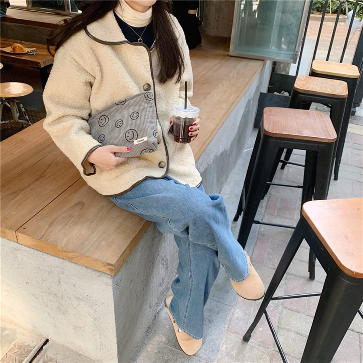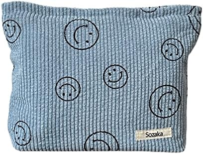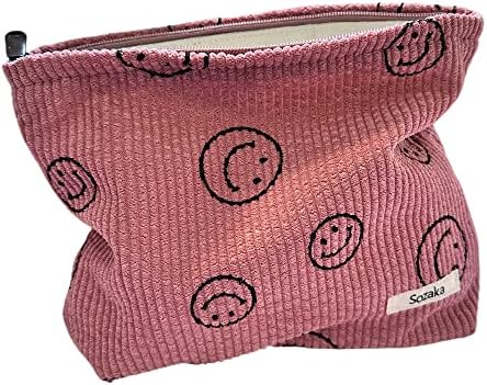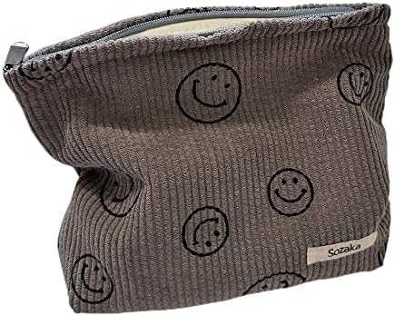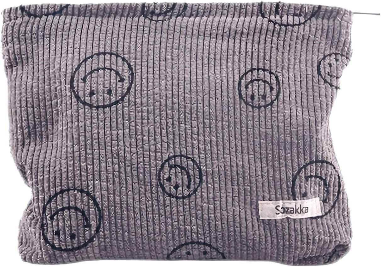 Cosmetic Bags for Women - Corduroy Cosmetic Bag Aesthetic Women Handbags Purses Smile Dots Makeup Organizer Storage Makeup Bag Girls Pencil Case Bags (Beige)