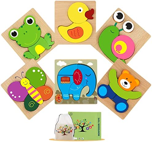 Montessori Toys for 1+ Year Old,Toddler Toys Age 1 2 3 Year Old Boy Girl, Wooden Puzzles for Toddlers 1-3,Learning Educational STEM Sensory Toys,6 Animal Jigsaw Puzzles Games Baby Toys Boy Girl Gifts