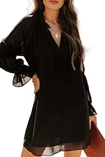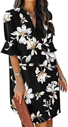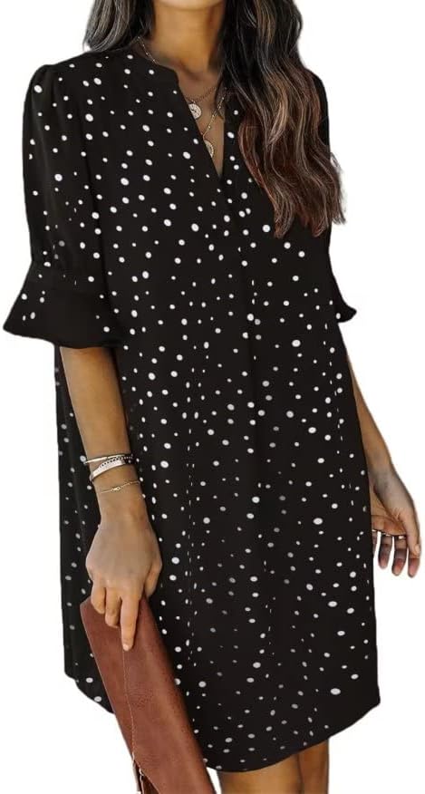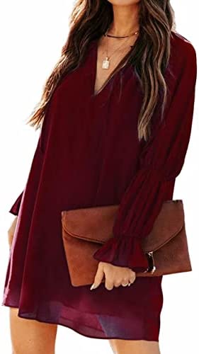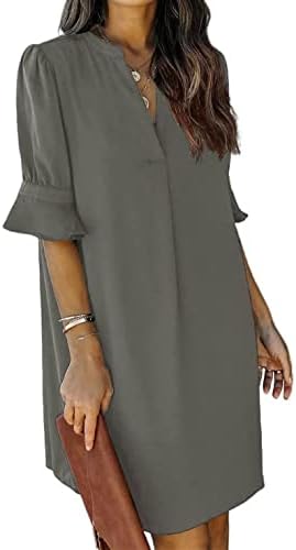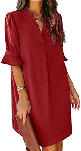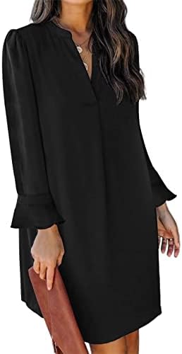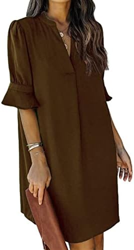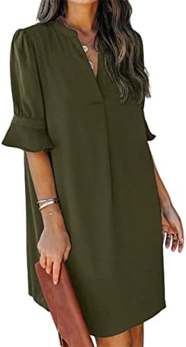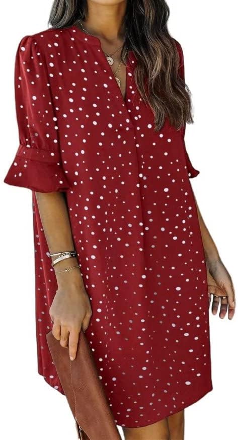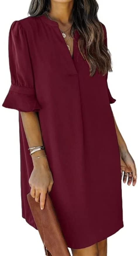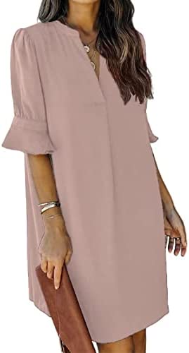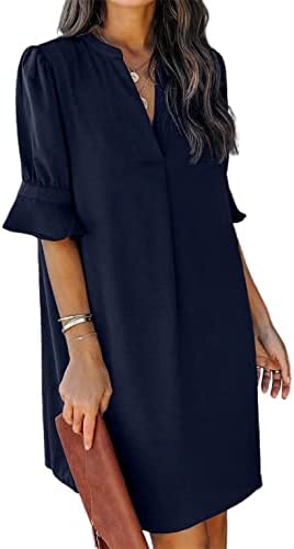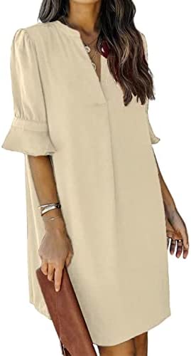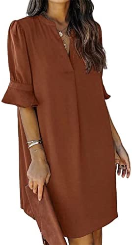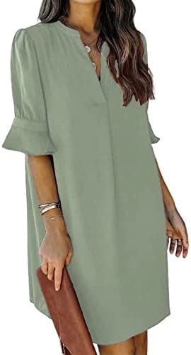 JOCAFIYE Women's Casual Dresses Short/Long Sleeve V-Neck Dress Casual Loose Shift Dresses