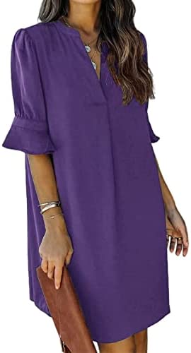 ✿Features: Knee length dress, V-neck, ruffle sleeves, shift dress, solid color, simple and plain,soft and attractive.Can be used as maternity dress。