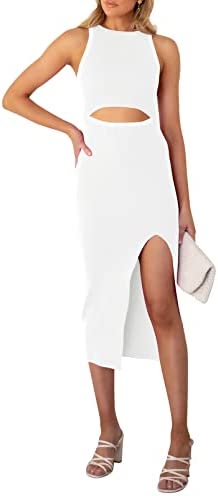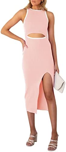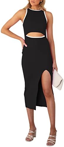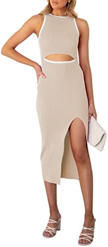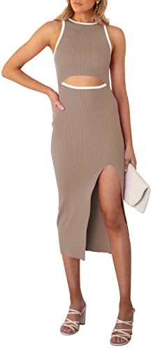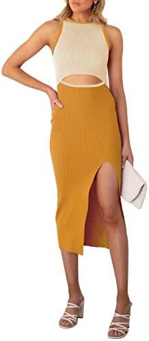 Sleeveless cutout bodycon dress, solid color and color block, hollow out, slim fit, tank knit midi cocktail dress