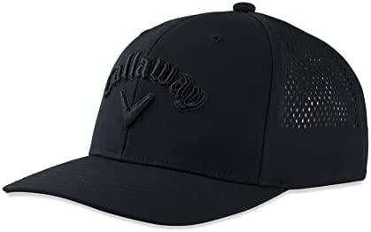 Four-way stretch performance moisture wicking tech fabric with laser perforated venting and cooling X-SPANN sweatband keep you dry in this fitted mid-profile structured design.