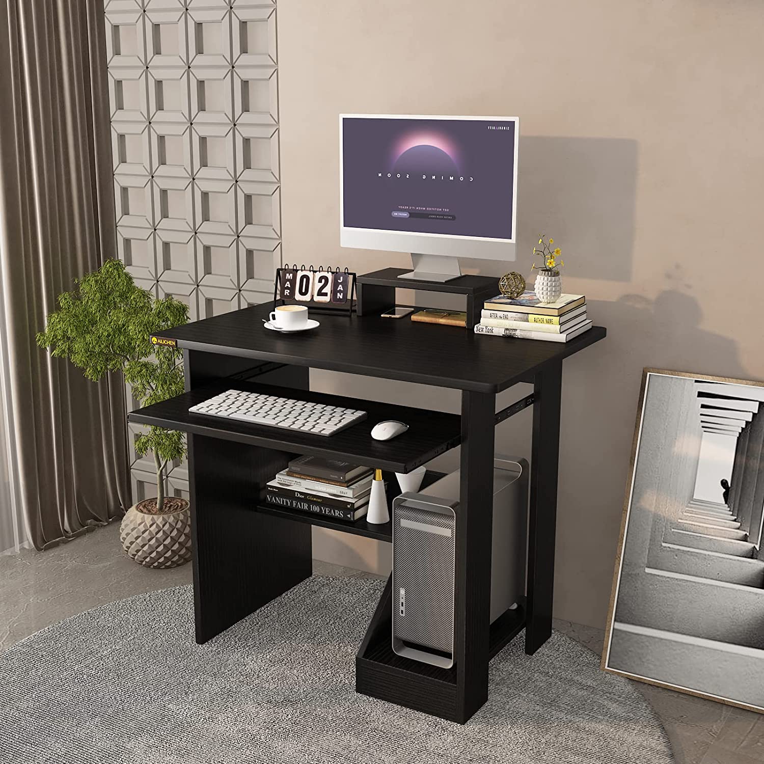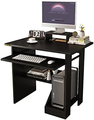 ALISENED Home Office Computer Desk with Monitor Stand Keyboard Tray, 29.5 Inch Study Writing Desk Small PC Laptop Table with Storage Shelves, Modern Workstation for Small Spaces Save Space