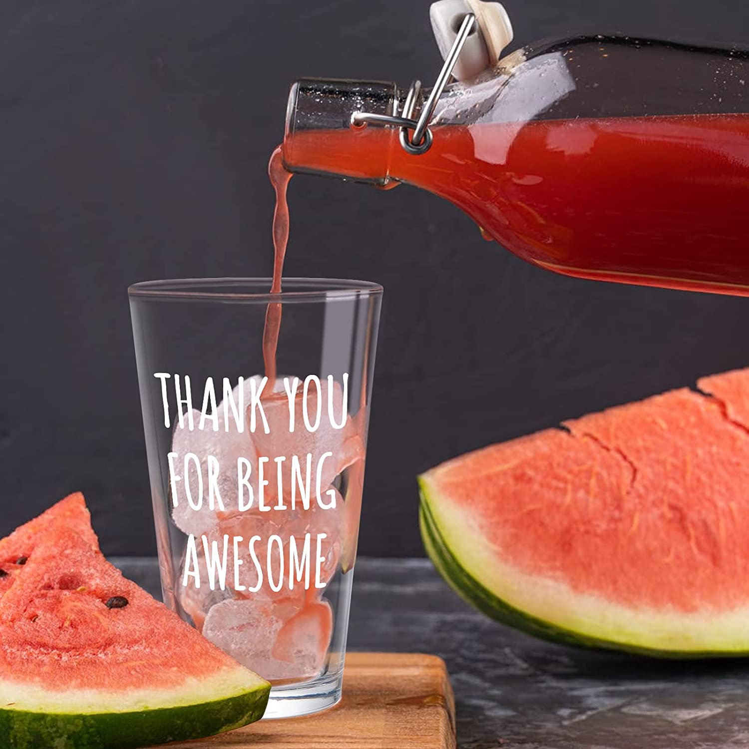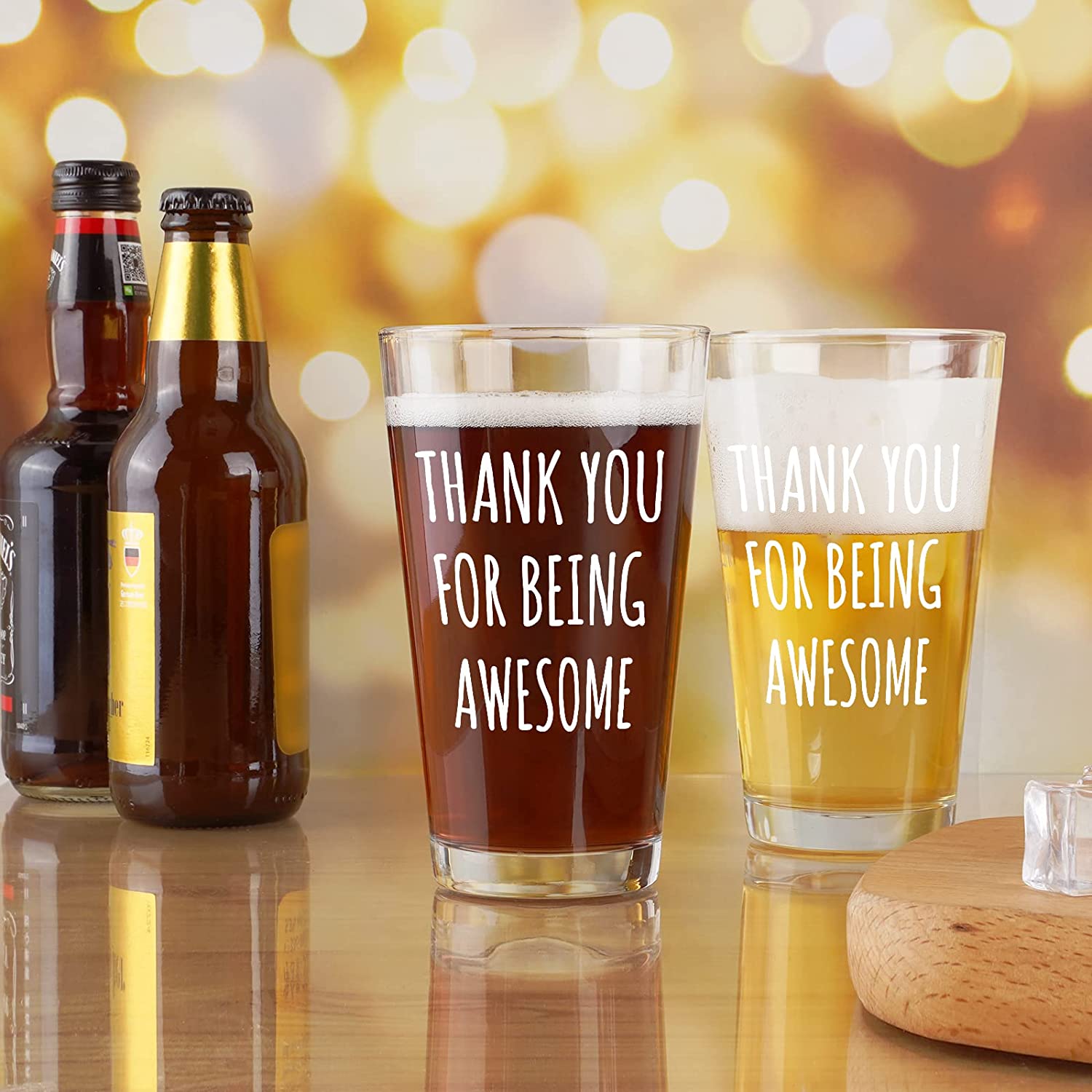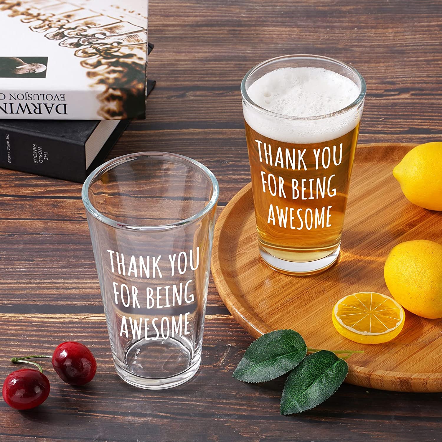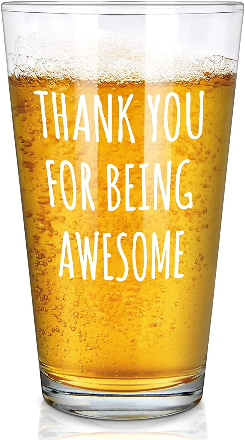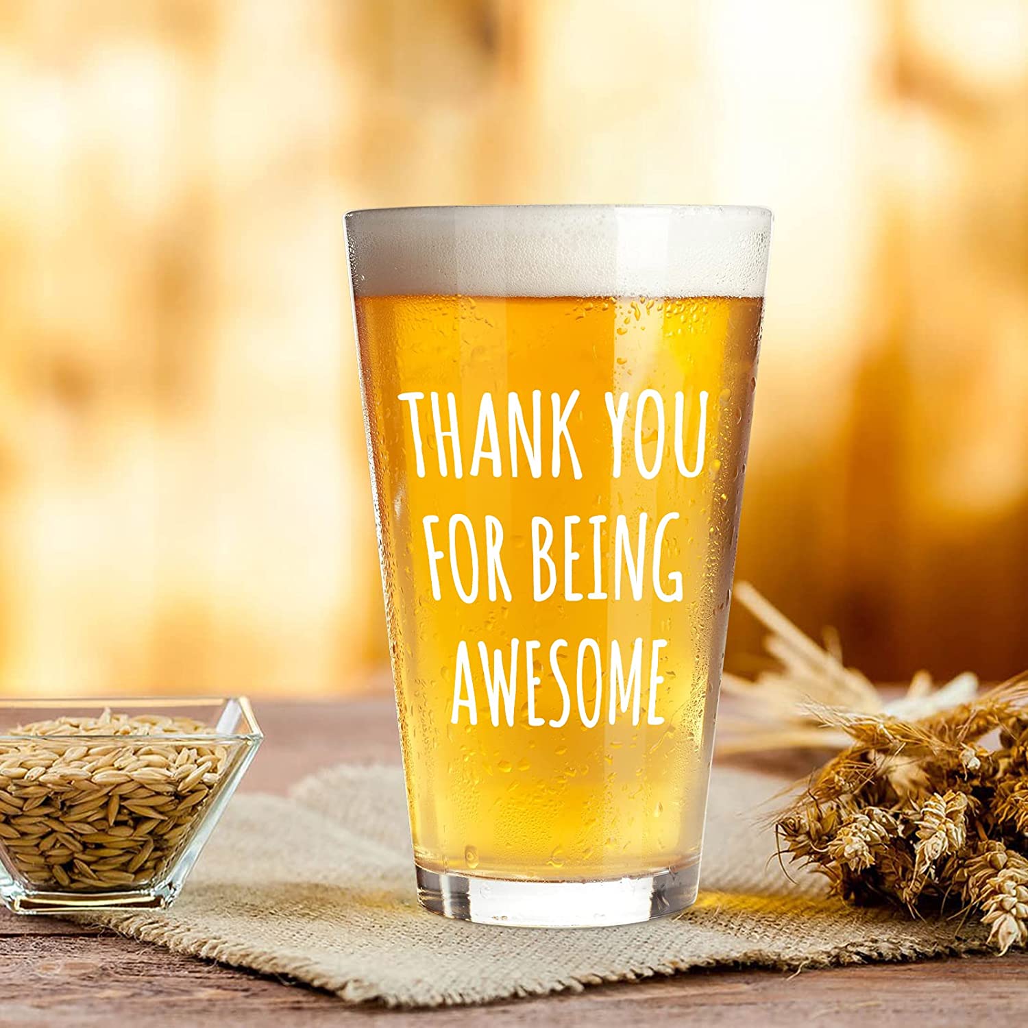 Modwnfy Thank You for Being Awesome Beer Glass, Funny Thank You Gifts for Christmas, Birthday Boss Day Congratulation Graduation, Inspirational Gifts Beer Pint Glass for Dad Boss Coworker, 15 oz