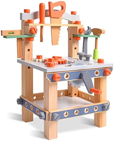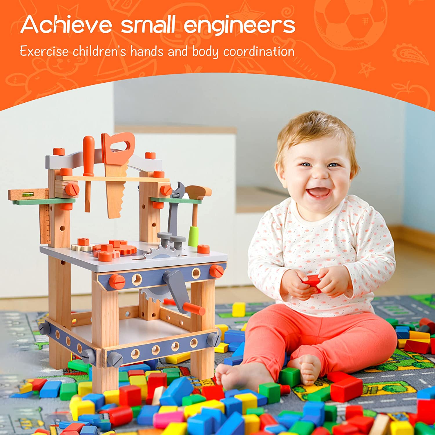 ⭐[Material and Quality]- Made of solid wood. Grinding irregular edges and corners, ensure no edges and corners and burrs, protect children's skin, let children play at ease, adults are also more at ease. kids tool bench.