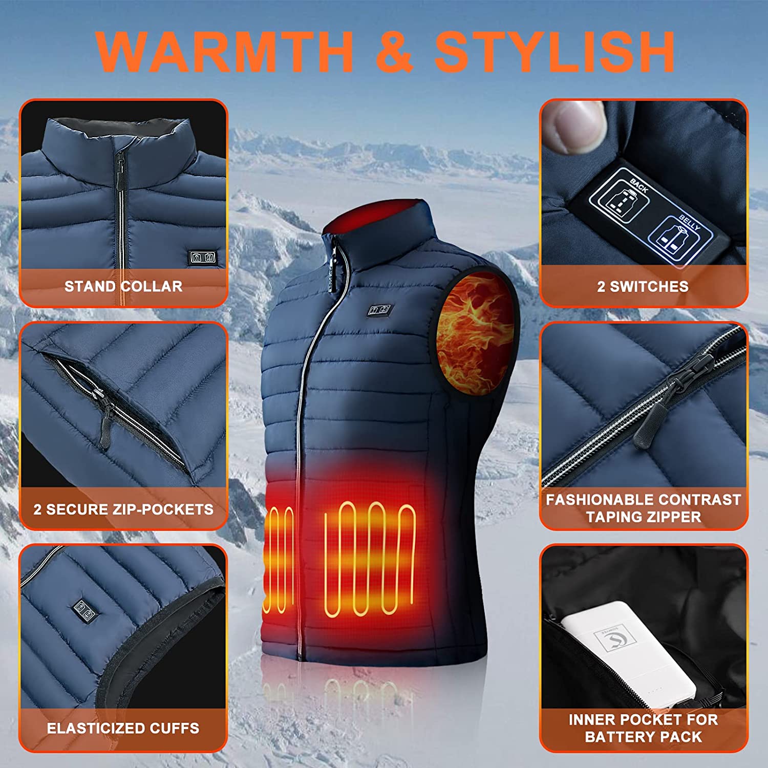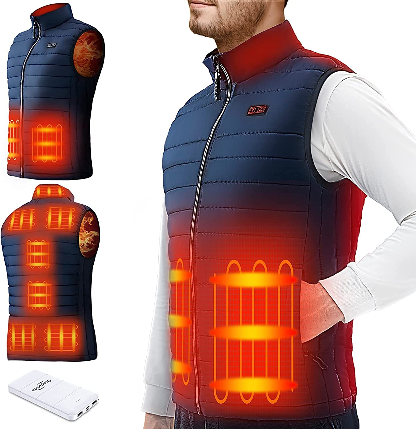 • Unique Design-It is well designed, the collar zipped up is form fitting to neck and doesn't rub on jaw line. And separate pocket on the inside of the vest for the battery makes it easier to charge your vest. It is a slim fit, if you want to make it as an outer layer, or more loose, you can choose one size larger than your usual size. it's perfect for outdoor activities like hunting, camping, mountain climbing, hiking, skiing, golf, or some other outdoor works.