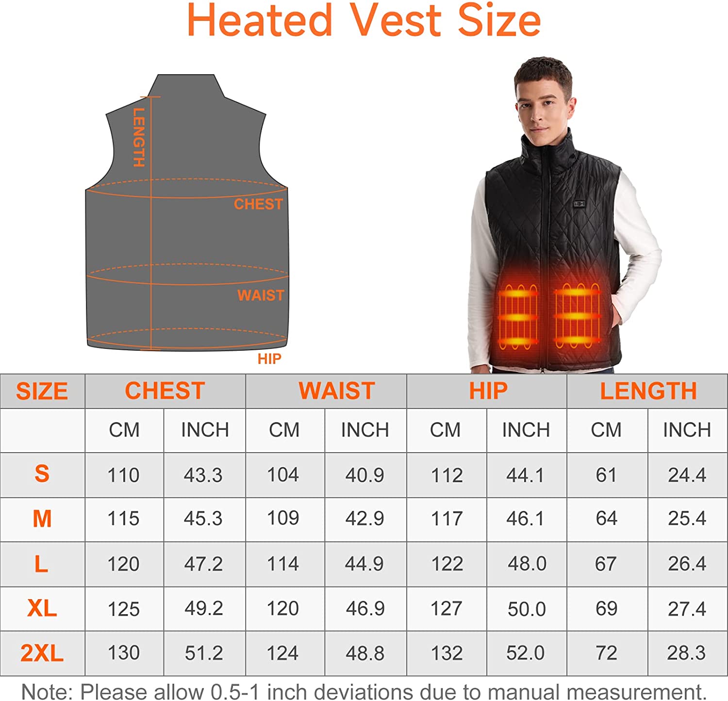 • Customer Service -Please check the size chart before purchasing, if you don't know what to choose, please contact us via email. Any questions with our heated vests , please feel free to contact us via email, we will do our best to help you solve the problem in 24 hours.