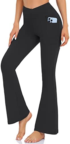 Super Flare&Crossover Design: Flare Leg allow you to move without restriction, effectively helps hide the defects of the calf, and creates the contour and slender appearance of the popular line.The 4.5" wide elastic waistband and a v-seam design which perfectly reveals the navel,trim the waist line and visually elongate the waist ratio.Suitable for ladies of all body types.