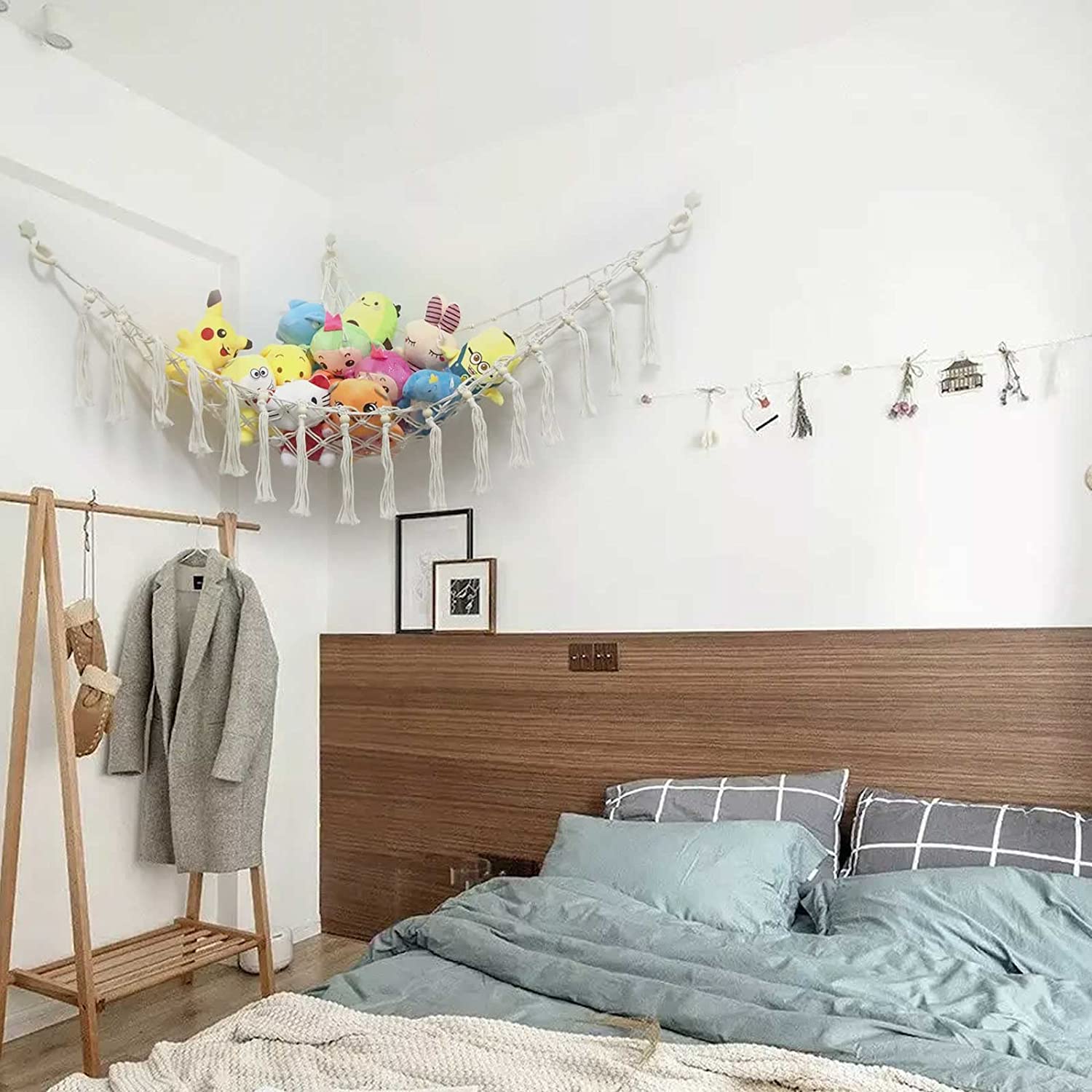 【Larger size, More storage】The size of the large stuffed animals hammock is 57*41*41 inches, Take advantage of the triangular corners on the wall to accommodate a large number of kid's stuffed animals without taking up extra floor space.