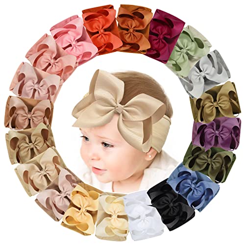 doboi 20pcs Baby Girl Bows Baby Headbands 6Inches Hair Accessories Infant Newborn Toddler Baby Bows and Nylon Headbands Big Bows for Baby Girls