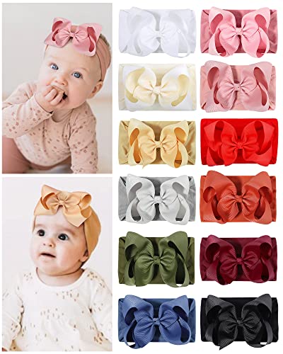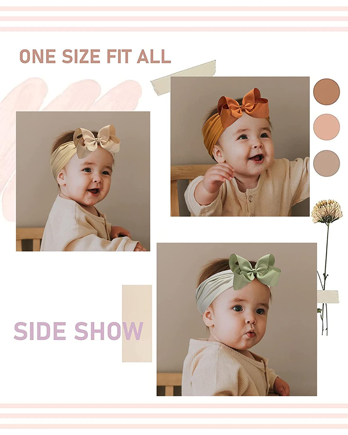 • ❤【Quality Material】: Our baby headband material is made of soft nylon and the bow is made of ribbon bows. Unlike other regular nylon hairbands, each large ribbon bow of the baby girl headband is handmade. The stretchy nylon headband fits most babies from newborn to toddler.