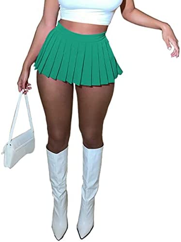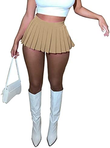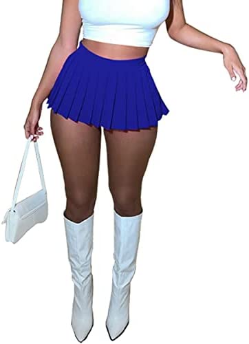 Women's Mini Pleated Skirts Sexy Club Y2k High Wiast Stretchy Tennis Skater A-line Skirt