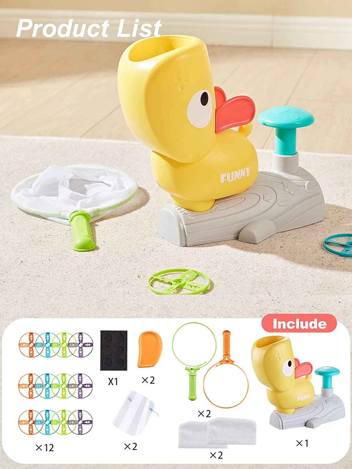 • PLEASE NOTE: Please do not put head above the launching port while playing. The flying height of the saucer varies depending on the number of saucers you put in the launcher.