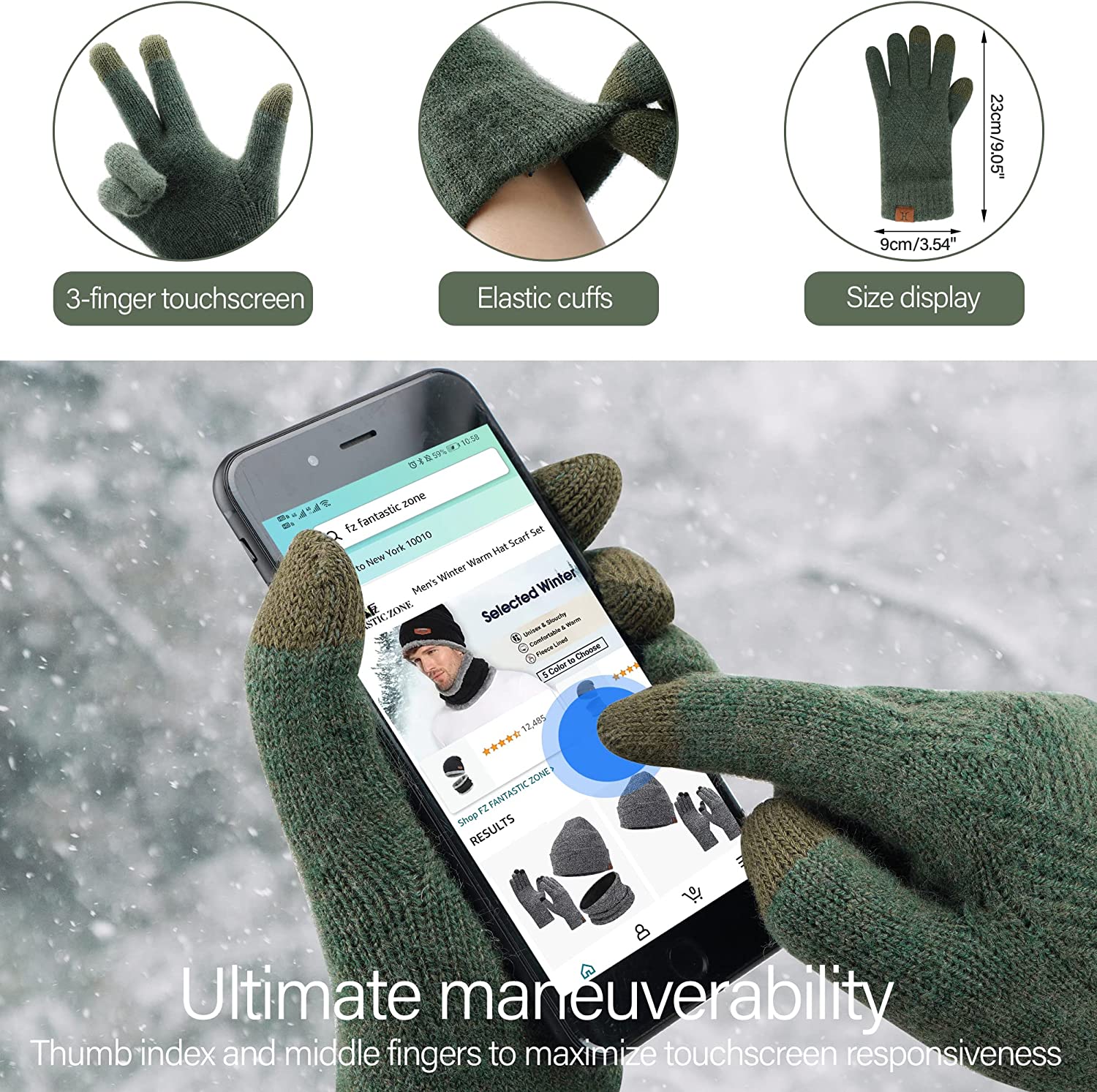 • Winter Touch Screen Gloves: Our Warm Texting Gloves have tight stitching, thick and comfortable, and elastic cuffs keep the glove close to your skin for a perfect fit in your hands. The diamond twill texture is beautiful and lovely, elegant and simple. Fingertips (thumb index and middle fingers) are made of conductive fabric, compatible with touch screen panels of smartphones, tablets, smart watches, cars, no need to worry about freezing your hands.