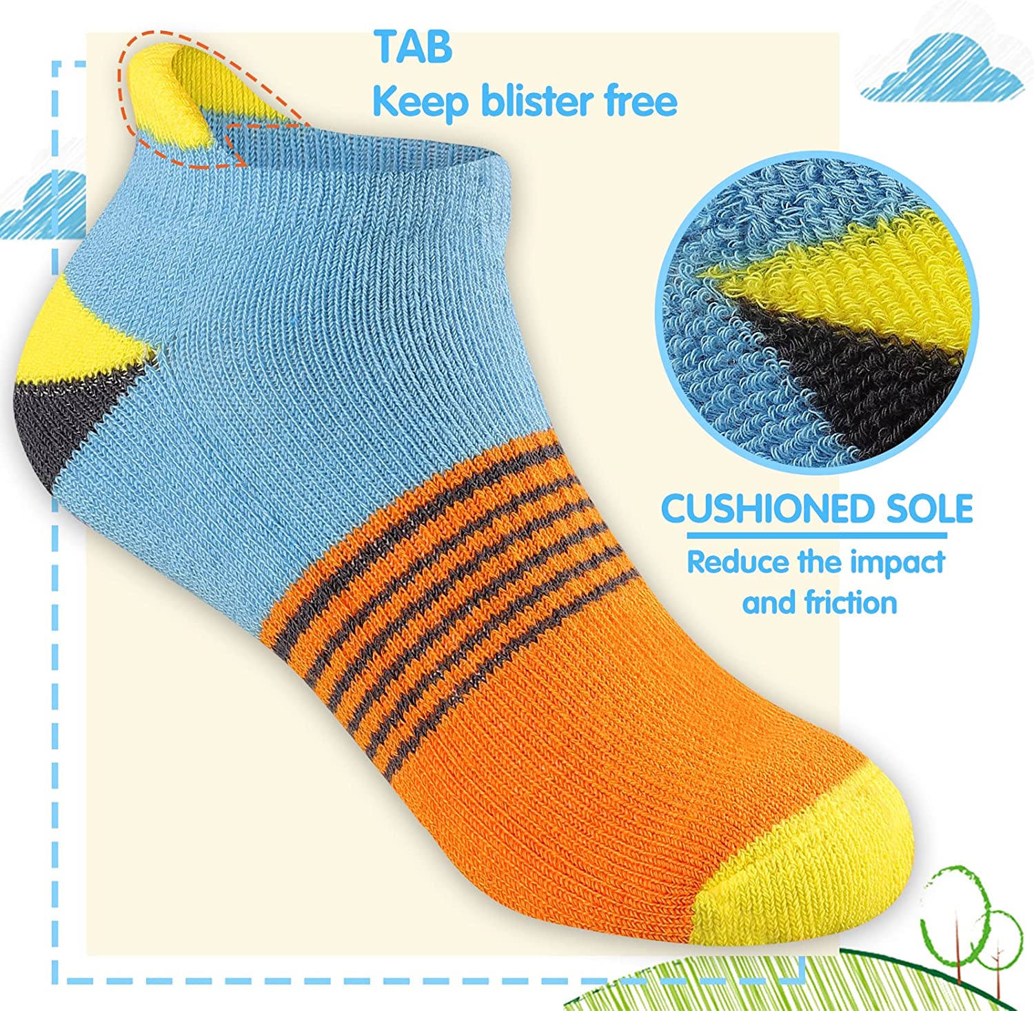 • HALF CUSHIONED: Our boys ankle socks have thick padding in the bottom, which can reduce excessive friction with shoes and slow down the impact of intense exercise, giving all day comfort and protection for your active boys.