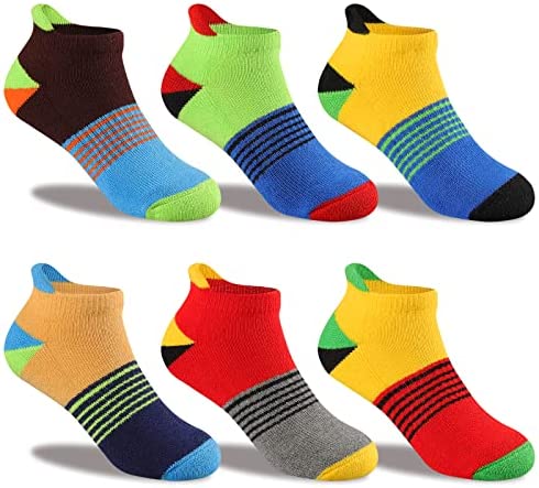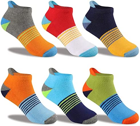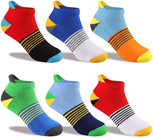 Comfoex Boys Socks Ankle Athletic Socks For Kids 4-6 6-8 8-10 Years Old Short Cotton Half Cushioned Socks 6 Pairs