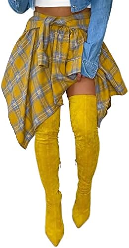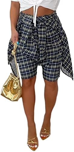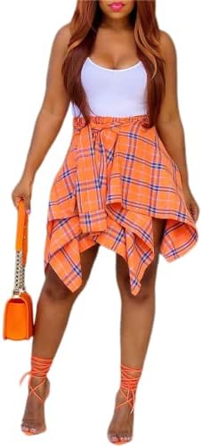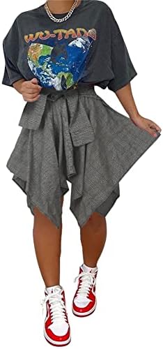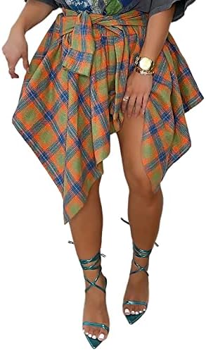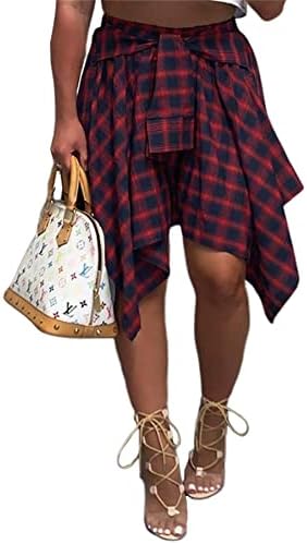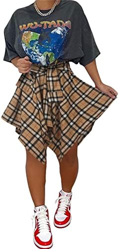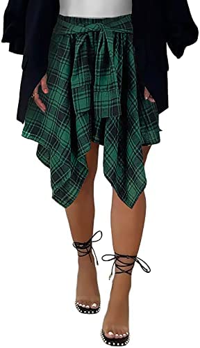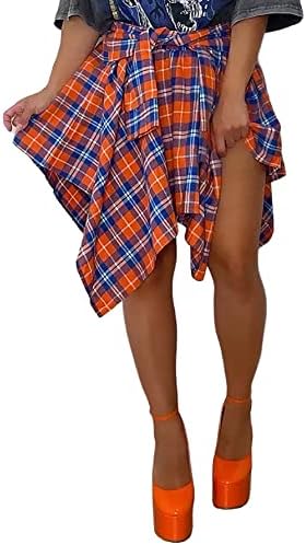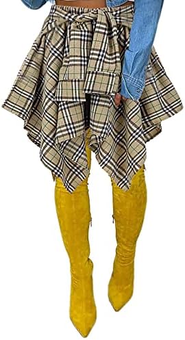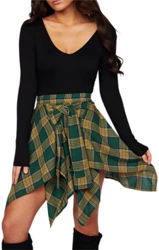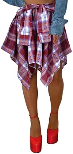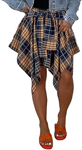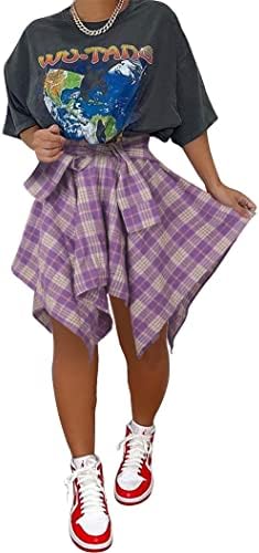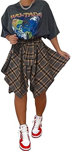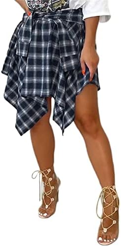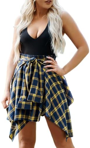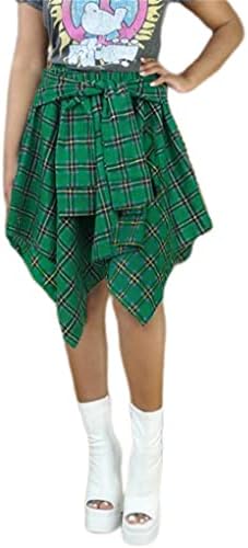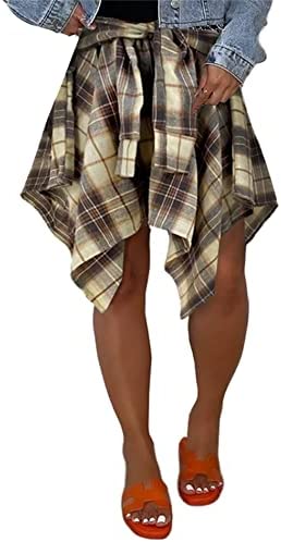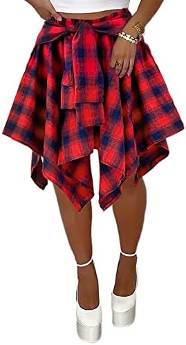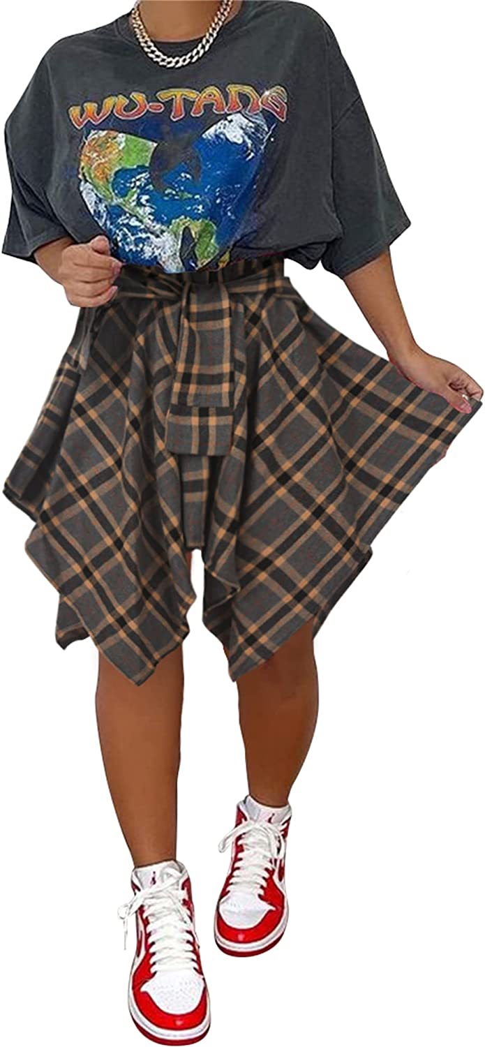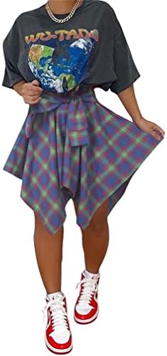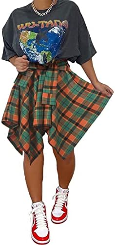 Features: 90s vibes plaid pattern, grunge pleated design, irregular hem, flared A-line shape, and elastic waist, shirt-sleeve-style ties design, just like tying plaid overshirts around our waist.